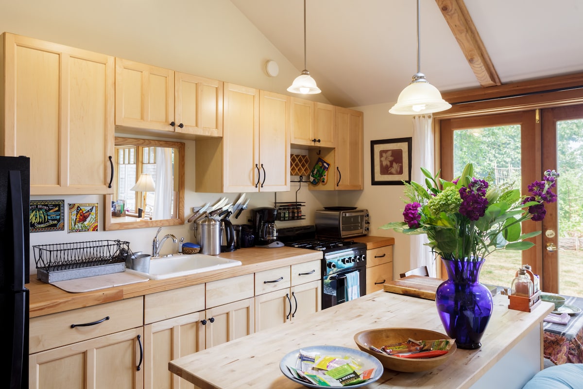 Tidy House dista pochi passi dal cuore della città di Vashon. Raggiungi a piedi il mercato contadino, ristoranti, caffetterie, bar, musei, gallerie e approfitta del facile accesso ai sentieri dell'Island Center Forest. Avrai il tuo cottage accogliente e recentemente ristrutturato su una proprietà di due acri con frutteto, amache, polli e pioppi. Parcheggio facile e accesso ai mezzi pubblici. Quartiere molto sicuro e ottima posizione centrale per escursioni in bicicletta. LGBTQ+ friendly.