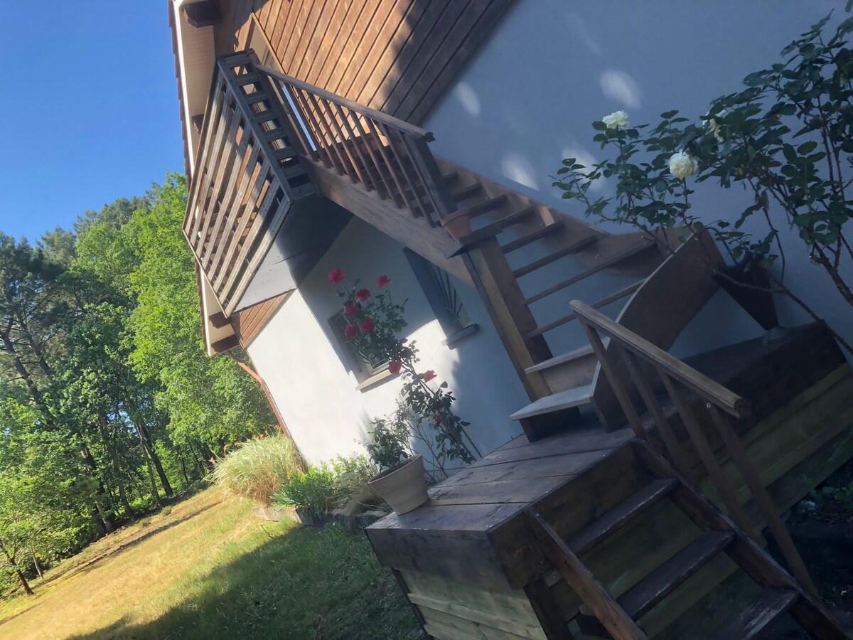 Bellissimo cottage equestre 60mq climatizzato con terrazza in mezzo a 1 scrigno di verde (20 ettari di foresta e sentieri privati ) Potrete godere dalla terrazza arredata di 1 piccolo salotto cocooning di 1 vista mozzafiato, sulla pianura,la foresta, e i magnifici tramonti Sarete in prima fila per guardare dalla terrazza, dal vostro letto o divano i cavalieri nel maneggio Alloggio soleggiato, arredamento raffinato, tranquillità garantita Accesso diretto dall'appartamento per passeggiate a piedi Relax e riposo assicurati