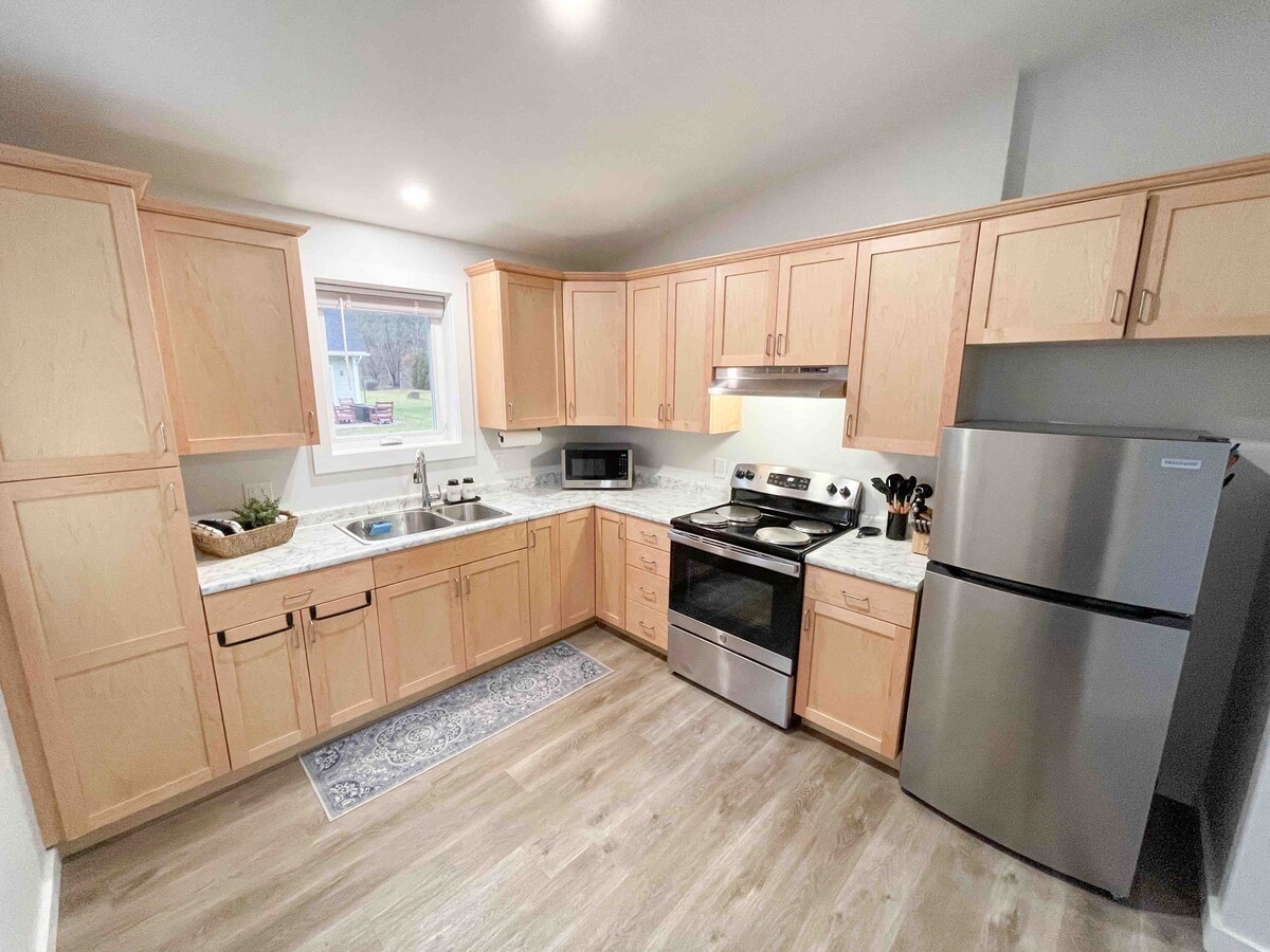 A newly constructed apartment. The property features vaulted ceilings, a modern kitchen, a dining area, a comfortable living room with a dedicated space for working, 1 BR & bath, washer & dryer. A patio, complete with a sitting area (seasonally) that offers views of Mount Sugarloaf. Situated on a tranquil cul-de-sac, the property offers a calm environment. The apartment is independent living from the main house, with a shared patio. Park directly in front of the apartment's entrance.