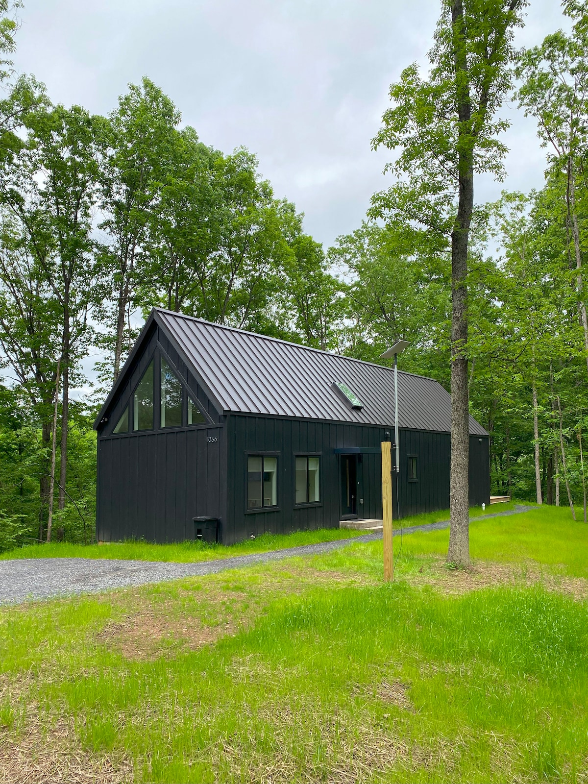 Rifugiati nel nostro moderno chalet su 12 acri privati. Rilassati nella vasca idromassaggio a legna, godendoti i dintorni e le stelle di notte. Con un design contemporaneo e luce naturale, questo rifugio si fonde con la natura. Esplora i sentieri privati che attraversano la proprietà, godendoti la natura e l'aria fresca. All'interno, troverai comfort nella cucina completamente attrezzata e nell'accogliente zona giorno. Perfetta per una fuga tranquilla, la nostra casa appartata offre privacy e relax.