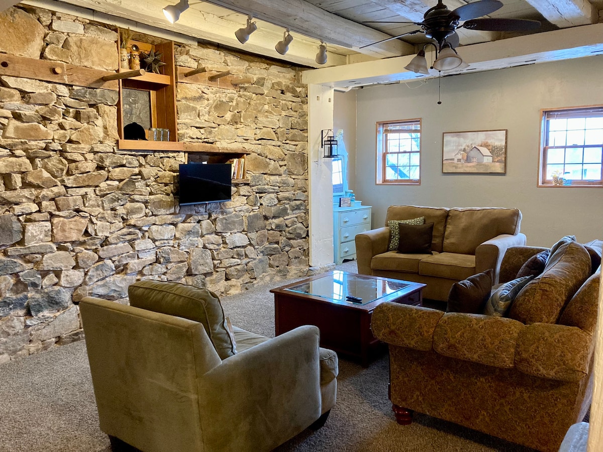 Rilassati in questo appartamento recentemente ristrutturato delimitato da campi di mais. Questa struttura offre un tranquillo rifugio di campagna con facile accesso a Hershey (30 minuti), Lancaster (40 min.), Harrisburg (30 min.) e Mt. Gretna (10 min.). Nota bene: la mia famiglia vive sopra l'appartamento. Cerchiamo di fare silenzio quando abbiamo ospiti, ma potresti sentire suoni di piccoli piedi, piccole voci, ecc. Purtroppo non siamo in grado di accogliere animali di servizio a causa di un'allergia familiare.