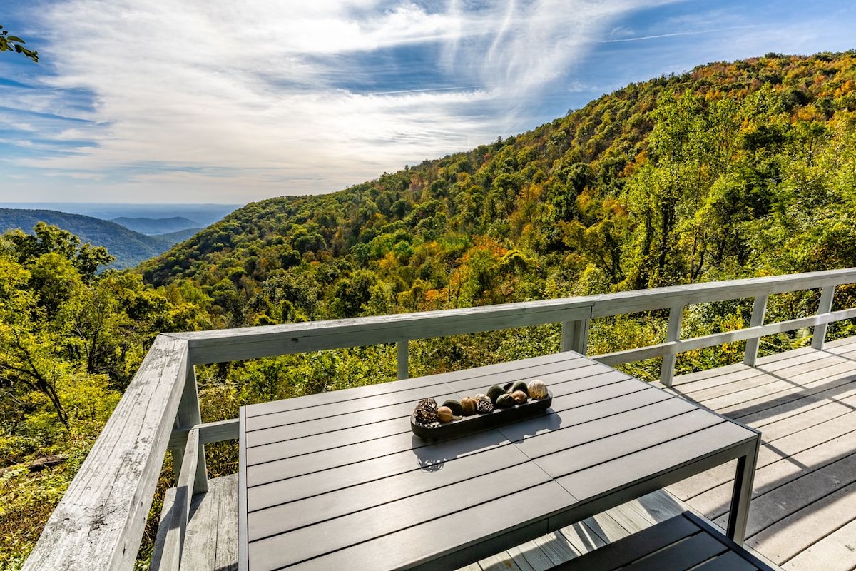 Stargazer è il luogo perfetto per allontanarsi da tutto! La quiete e la serenità di essere immersi in una riserva ornitologica e faunistica fanno bene all'anima. Guarda l'alba da una sedia a cesto sospesa a 820 metri di altitudine, o aspetta il sorgere della luna e brinda a una vista spettacolare sulle stelle! Rilassati nella sauna dopo una giornata ricca di escursioni e un pasto all'aperto sul ponte. Arrostisci s'more sul tavolo da fuoco in terrazza o sul focolare nel cortile laterale. C'è magia nell'aria in questo rifugio in cima alla montagna!