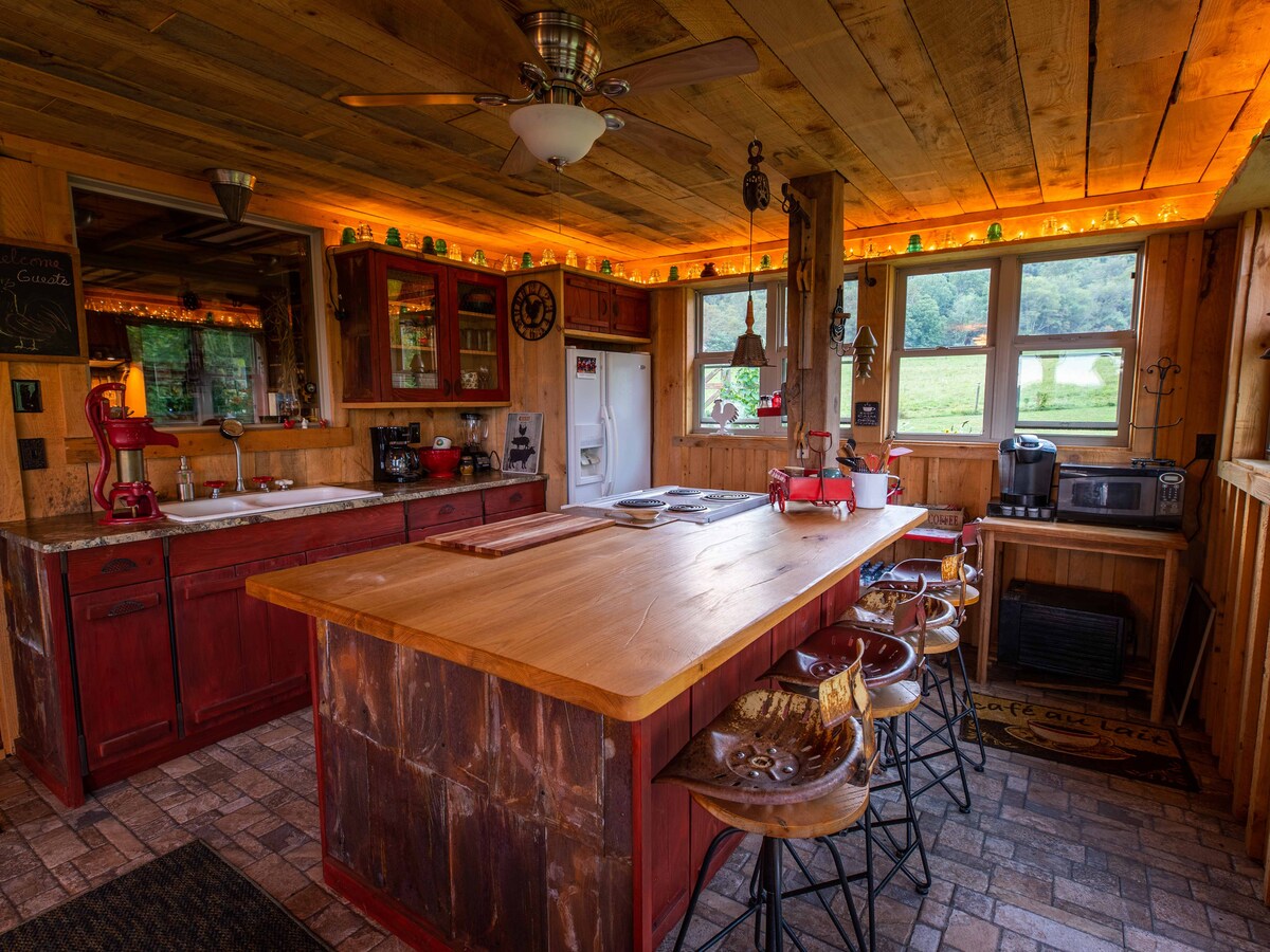 Rigenera il tuo cuore ascoltando il torrente e immergendoti nella bellezza del maneggio. Questo loft/chalet al piano superiore, recentemente ristrutturato, fa parte di un vecchio fienile storico costruito nel 1800 e utilizzato come uno dei primi Pony Express! Arredato in modo unico, con ampie finestre e una splendida vista sui pascoli e sulle montagne lontane, il tuo rifugio si trova a soli 10 km da Damascus, in Virginia, a 72,5 km da Boone, in North Carolina, e a 40,2 km da Abingdon, in Virginia. Goditi il sentiero della Cherokee National Forest che conduce a una doppia cascata!