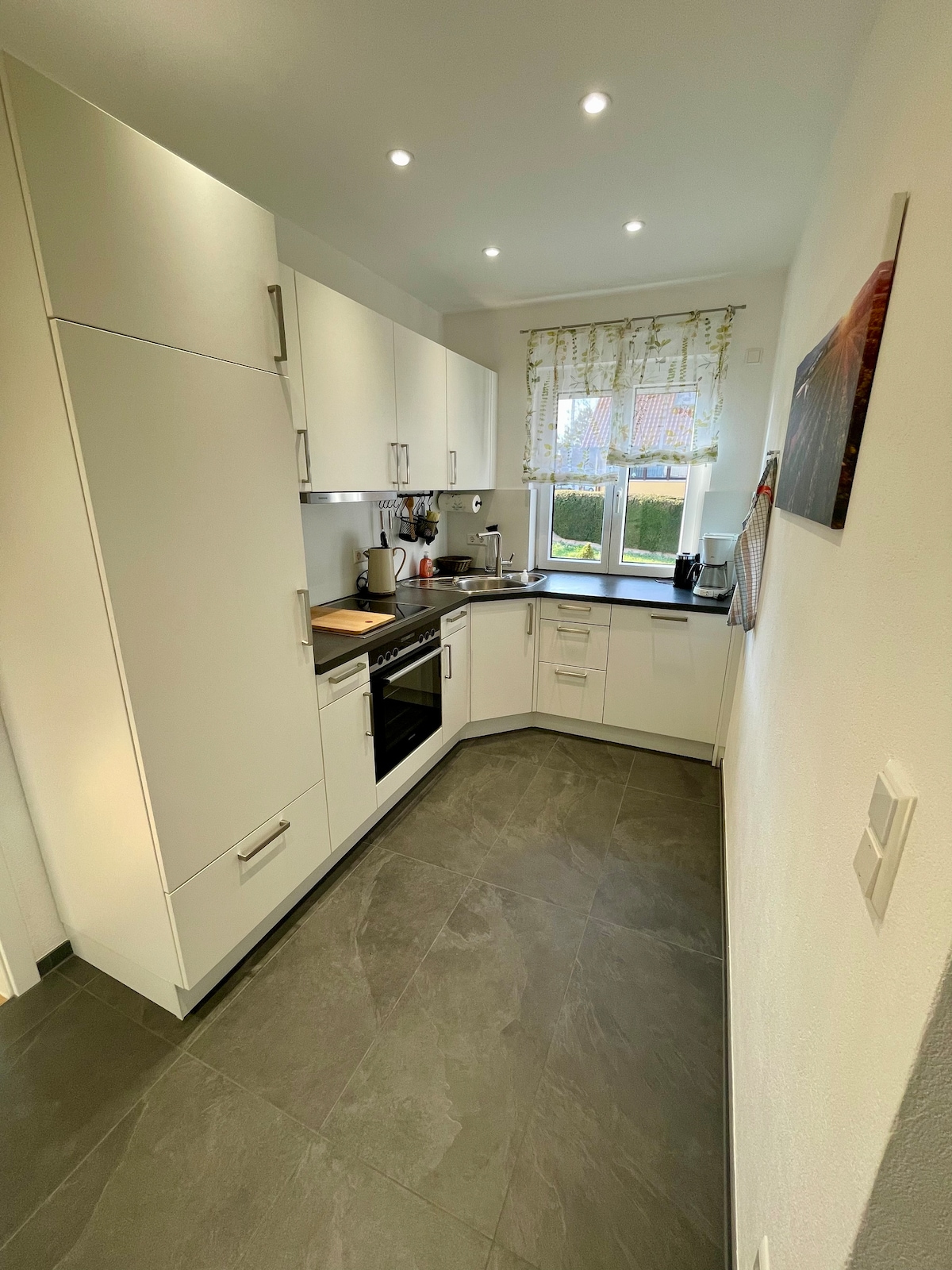 Rilassati in questo alloggio speciale e tranquillo. L'appartamento mansardato al 2° piano offre 2 camere da letto 1 soggiorno e sala da pranzo, cucina e bagno. La casa è una nuova costruzione e di conseguenza l'arredamento è in colori luminosi e accoglienti. L'appartamento si trova in una posizione tranquilla e gode di una bellissima vista sul verde, dove è possibile rilassarsi dalla vita di tutti i giorni. Dotazione: riscaldamento a pavimento, cucina completa incl. stoviglie, ecc. doccia a pavimento, finestre a tutta altezza nella zona soggiorno-cucina e pranzo.