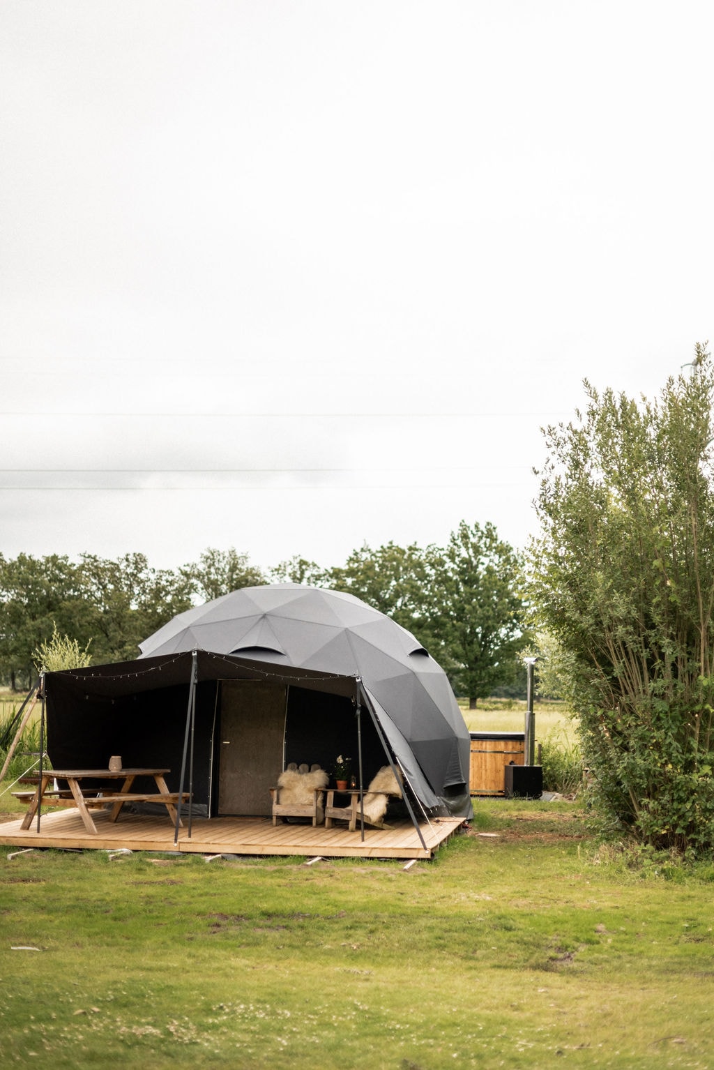 NEW LOCATION! This charming Lotus Belle tent is located on a private island, right in the heart of a peatland area. An intimate place where you can truly unwind together and fully experience island life on the water. The tent is set on a 500 m² private island. No other tents; only a small house further along. Including private toilet, a hot-water shower, and 220V electricity. A pedal boat allows you to head out onto the water together and explore this beautiful area at your own pace.