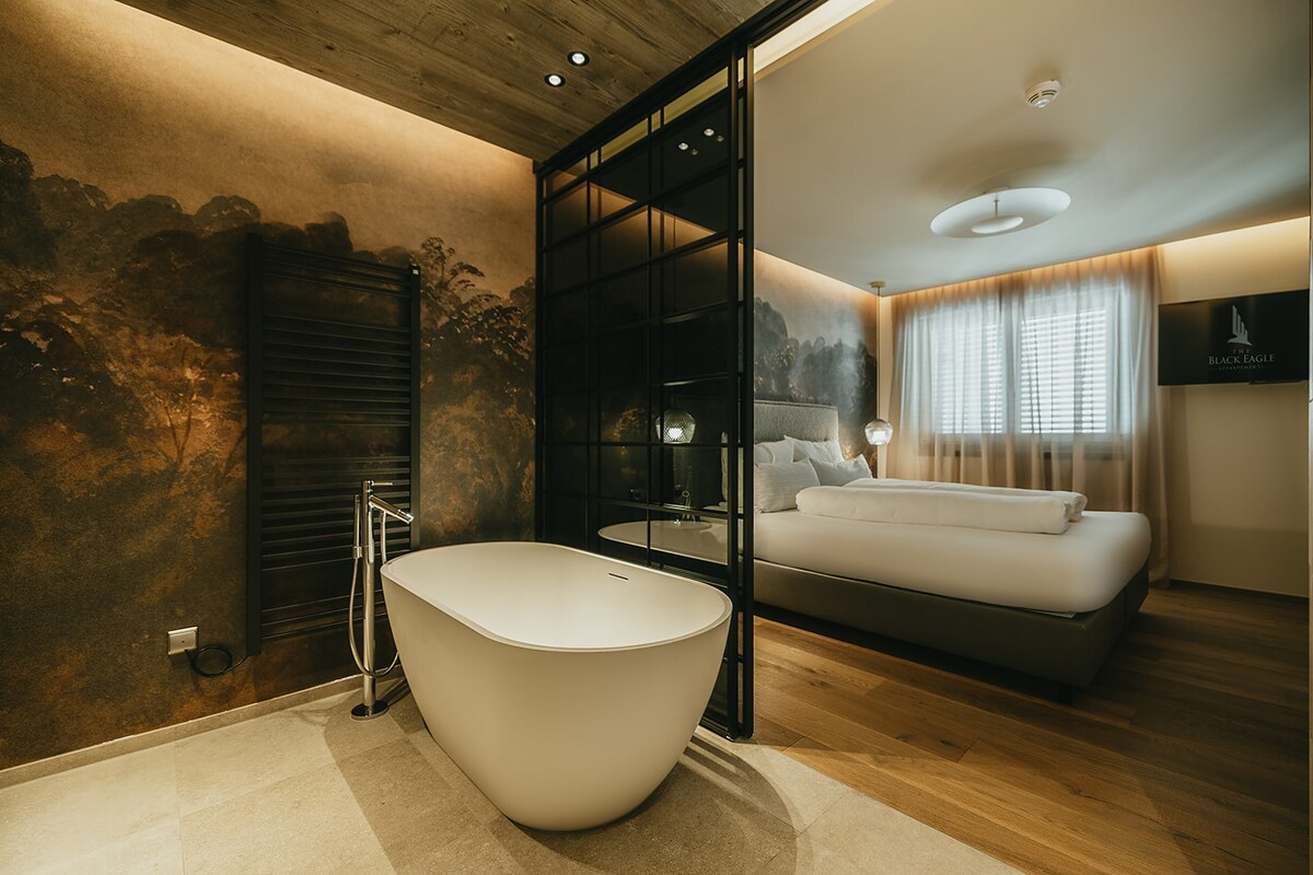 Accogliente, moderno, esclusivo, alpino e spazioso: l'appartamento Bedan nel villaggio di Gallzein (Tirolo - vicino alla Zillertal) colpisce per i suoi arredi artigianali e l'eleganza senza tempo. La tradizionale costruzione in legno tirolese combinata con elementi di design contemporaneo si ritrova in tutte le stanze. - 6 persone (su richiesta anche 7) - Appartamento di 100 m² - Ampio balcone - 2 camere da letto - Sauna in legno di pino cembro - Cucina completamente attrezzata - Postazione di lavoro (70 Mbit/s) - Cantinetta frigo per vini
