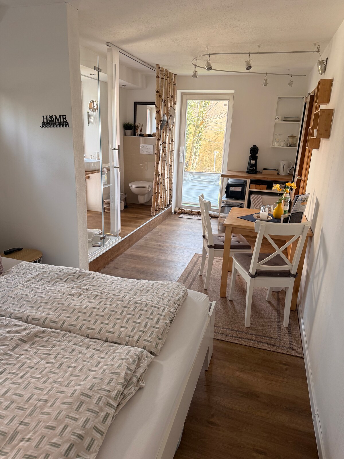 Questo accogliente appartamento di circa 37 metri quadrati è stato ristrutturato con amore e molti materiali da costruzione naturali, in modo che il fascino che una casa così antica può emanare non vada perso. Offre agli ospiti un ambiente molto accogliente in un idilliaco giardino paradisiaco. Proprio di fronte alla casa ci sono posti auto gratuiti a disposizione degli ospiti. È inoltre possibile noleggiare biciclette. Nelle immediate vicinanze ci sono vari negozi raggiungibili a piedi.
