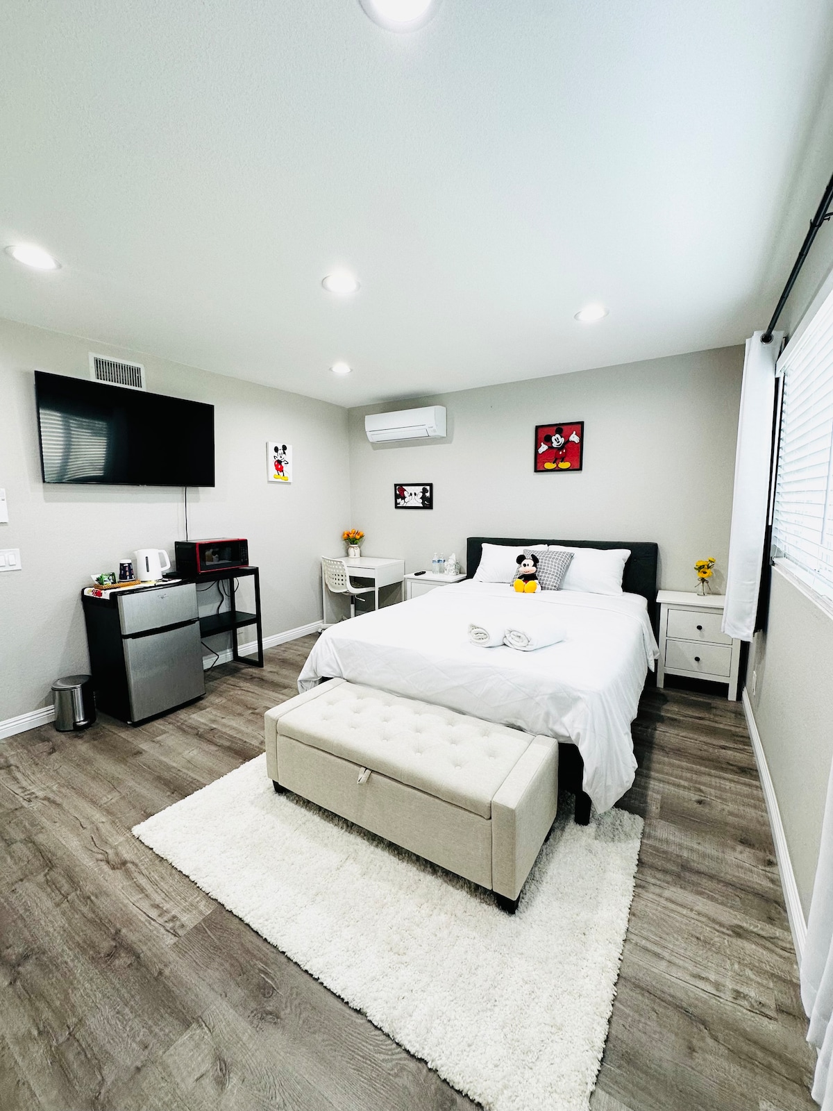 Enjoy comfort and privacy in your fully remodeled suite with a private entrance. The master bedroom offers a cozy queen bed, lounge chairs, and all the essential amenities (please note: no kitchen) Indulge yourself in the spa-style bathroom, featuring a large rain shower, six body sprays, and a smart toilet! 📍 Just 4.8 miles from Disneyland 🎢 2 miles from Knott’s Berry Farm 🚗 Minutes from the 5 & 91 freeways Perfect for a peaceful getaway with easy access to top attractions in Orange County!.
