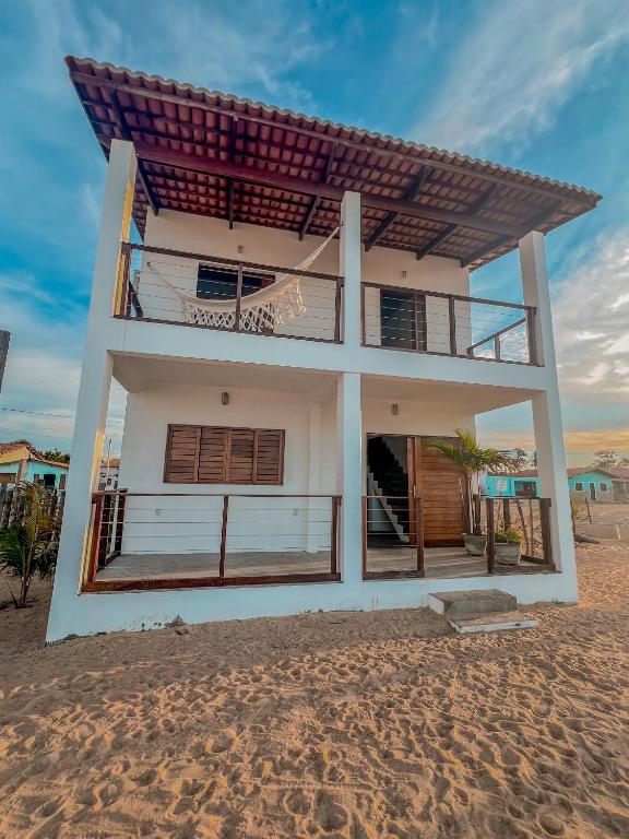 Esta charmosa acomodação pé-na-areia é perfeita para viagens em grupo. São 5 suítes confortáveis, todas equipadas com ar-condicionado, ideal para praticantes de kitesurf e para quem simplesmente ama estar à beira-mar. Aqui, cada pôr do sol é único e torna a estadia ainda mais especial. A decoração acolhedora, a ampla varanda com vista para o mar e o grande terraço no andar superior, perfeito para um happy hour, criam o ambiente ideal para relaxar e aproveitar o melhor de Galinhos.
