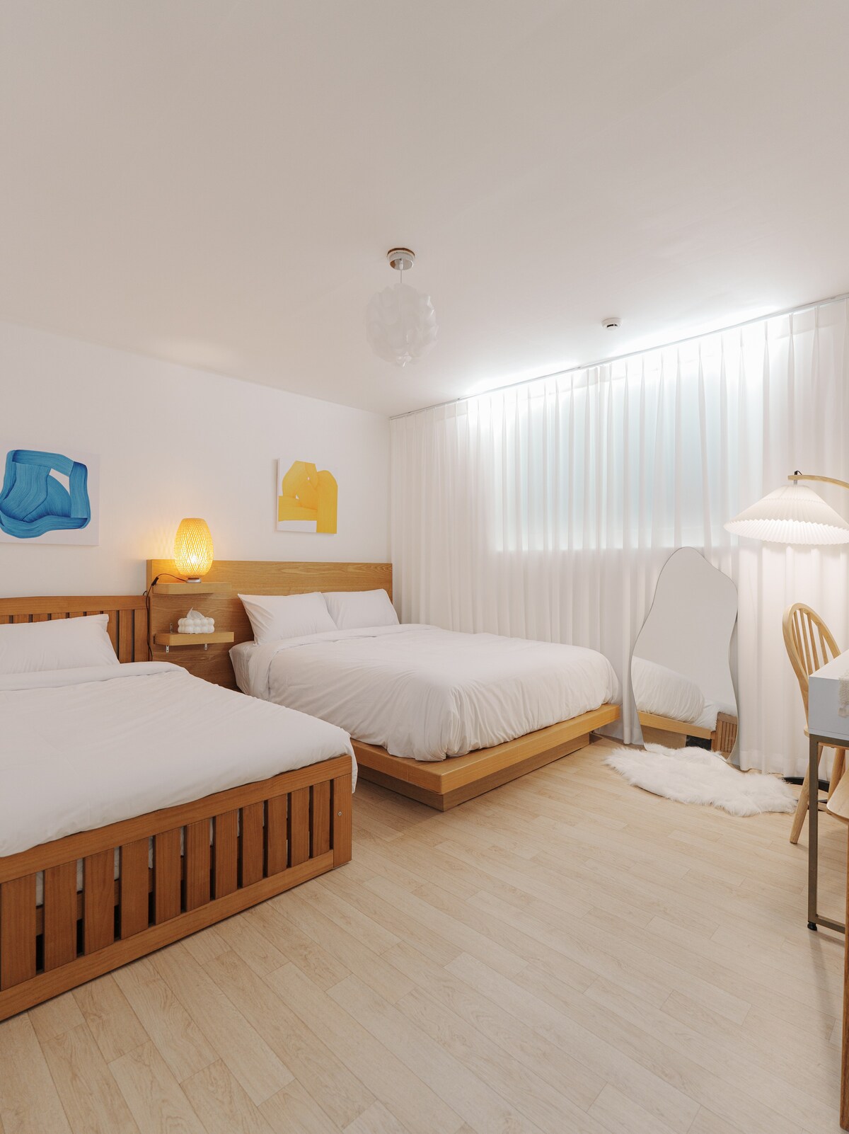 ์๋ ํ์ธ์. ์ฌํ, ์์ , ์ผ์ด ์๋ ๊ณณ โ ์ ์ด ํค์ด๋ธ์ ์ค์ ๊ฑธ ํ์ํฉ๋๋ค. ์ ์ด ํค์ด๋ธ์ ๋ฐ๋ปํ ์๋ ์ธํ ๋ฆฌ์ด์ ๊ฐ์ฑ์ ์ธ ๋นํฐ์ง ํฌ์ธํธ๊ฐ ์ด์ฐ๋ฌ์ ธ ๋๊ตฌ๋ ์ง ํธ์ํ ๋จธ๋ฌผ ์ ์๋ ๊ณต๊ฐ์ ์ ์ฌํด์. ๊ณ ์ ๋ฌธํ์ ์ฌ๋ํ๋ ํธ์คํธ์ ์ทจํฅ์ด ์ค๋ฉฐ๋ ์ด ๊ณต๊ฐ์์๋, ์กฐ์ฉํ ์ฌํ์ ํ๋ฃจ ๋์ ์์ ์ ํ๊ณ ๋๊ธํ๊ฒ ์ผ์ ์ฆ๊ธฐ๋ ์๊ฐ์ด ์์ฐ์ค๋ฝ๊ฒ ์ฐพ์์ต๋๋ค. ํ๊ธฐ์ฐฌ ์๊ถ๊ณผ ๋ง์ง ๊ณจ๋ชฉ์์ ์ด์ง ์์ชฝ, ์กฐ์ฉํ ์ฃผํ๊ฐ์ ์์นํด ์์ด ๋์ฌ ์์์๋ ์จ์ ํ ํด์์ ๋๋ฆด ์ ์์ด์. ์งํ์ฒ 5ํธ์ ๋์ด๋์ญ์์ ๋๋ณด 5๋ถ ๊ฑฐ๋ฆฌ์ ์์นํด ์๊ณ ์ฌ๋ฆผํฝ๊ณต์๊น์ง๋ ๋๋ณด 15๋ถ์ด๋ฉด ์ถฉ๋ถํด ๊ณต์ฐ์ ๊ด๋ํ๋ฌ ์ค๋ ๋ถ๋ค๊ป๋ ์์ฑ๋ง์ถค์ ๋๋ค. ์ผ์ดํ ํฌ์ด๋ผ๋ฉด ์ธ๊ทผ์ JYP ์ฌ์ฅ์, ์ฌ์ ๋ก์ด ์ฌํ์๋ผ๋ฉด ๋์ด์ญ์ ํต์์ฅ์, ๊ทธ๋ฆฌ๊ณ ๋ณ์ ๋ฐฉ๋ฌธ๊ฐ์ด๋ผ๋ฉด ์ฐจ๋ก 10๋ถ ๊ฑฐ๋ฆฌ์ ์์ฐ๋ณ์์ ํธํ๊ฒ ๋ฐฉ๋ฌธํ ์ ์์ด์. ์ฌํ์ ์ค๋ , ์์ ์ด ํ๋ฅด๋ ํด์, ๊ทธ๋ฆฌ๊ณ ์กฐ์ฉํ ์ผโJay Haven์์ ๋น์ ๋ง์ ์ด์ผ๊ธฐ๋ฅผ ์์ํด๋ณด์ธ์.