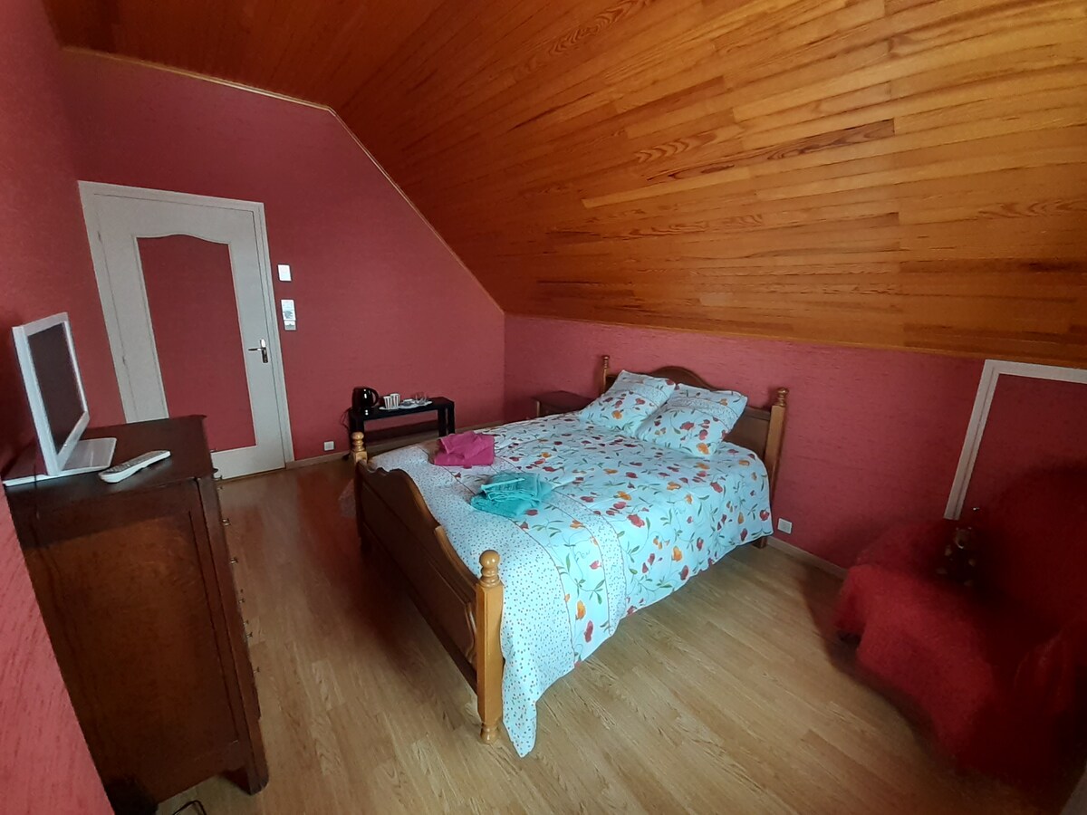 Tra lago e montagna, un posto tranquillo con jacuzzi e vista eccezionale a 180°! La vostra spaziosa camera da letto dispone di un letto di 160, una TV e una scrivania. Il bagno e i servizi igienici separati sono sullo stesso piano, a vostra completa disposizione. Biancheria fornita. Al piano terra, la colazione (+ 9€ /pers.) viene servita nella veranda, particolarmente piacevole, o in terrazza. La sera potrete avere accesso condiviso alla cucina, al soggiorno con TV e camino, nonché alla terrazza.