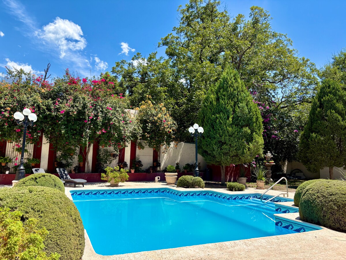 Scopri il fascino di García, Nuevo León, soggiornando in una splendida villa in stile nord-orientale. Situata nel cuore del centro storico, a un solo isolato dalla piazza principale e dai ristoranti più emblematici, questa casa ti offre un'esperienza unica. Circondato da un accogliente frutteto con alberi di noce e da un ampio giardino, è il luogo perfetto per rilassarsi, godersi la natura e respirare aria pulita. Ideale per chi cerca una vacanza comoda e ricca di fascino tradizionale.