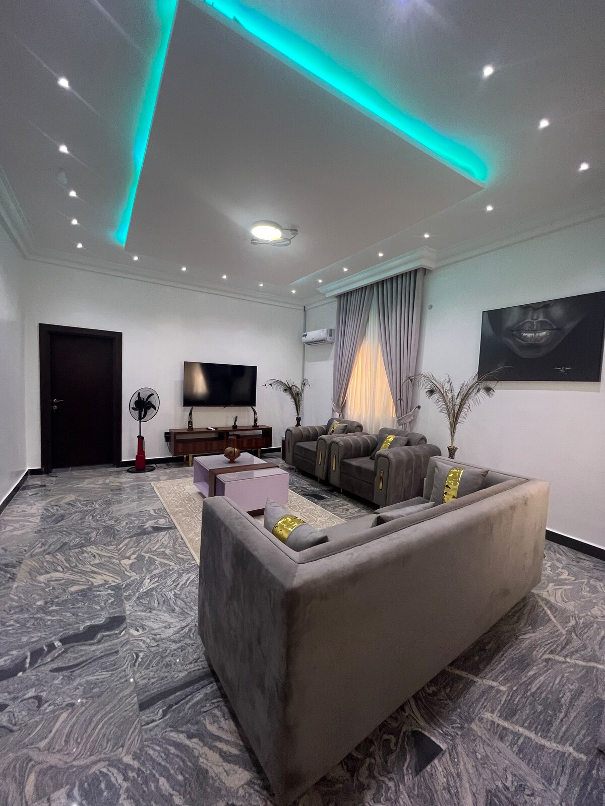 Porta con codice Balconi privati Lavatrice Accoglienti 3 camere da letto 5 condizionatori d'aria Spazio di lavoro privato Salotto arredato Cucina completamente attrezzata 4 servizi igienici e 3 bagni Starlink e Wi-Fi in fibra ottica Luce 24 ore su 24 (solare | Inverter | Gen) If No Power Grid: Gen: 6am-8am, 6pm-12am but inverter always on. Vicinanza a mercati, locali notturni, ristoranti e negozi Biancheria da letto e asciugamani puliti e puliti Quartiere sereno, sicuro e bello Smart TV da 85", 65", 50" e 50" (Prime, Netflix)
