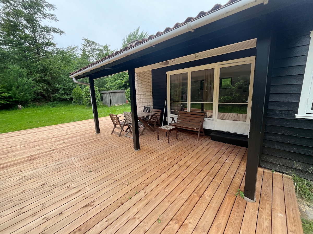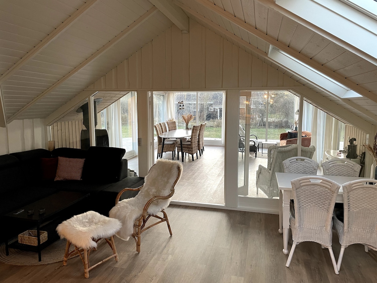 Cottage appena ristrutturato di 82 mq, ideale per 2-4 persone. La casa dispone di due camere da letto, un letto matrimoniale e 2 accoglienti soggiorni separati con zona pranzo e divano, nonché 3 terrazze coperte, una delle quali con tettoia. All'esterno potrai goderti un bagno nella natura selvaggia e una doccia esterna riscaldata a energia solare. A soli 800 metri dalla migliore spiaggia della Danimarca, vicino al campo da golf, a Bøtøskoven e allo shopping. Situato su un terreno chiuso con spazio per un cane, è ideale per una vacanza nella tranquillità e nella natura. Ci sono biciclette, elettricità gratuita, acqua, legna da ardere, ecc.