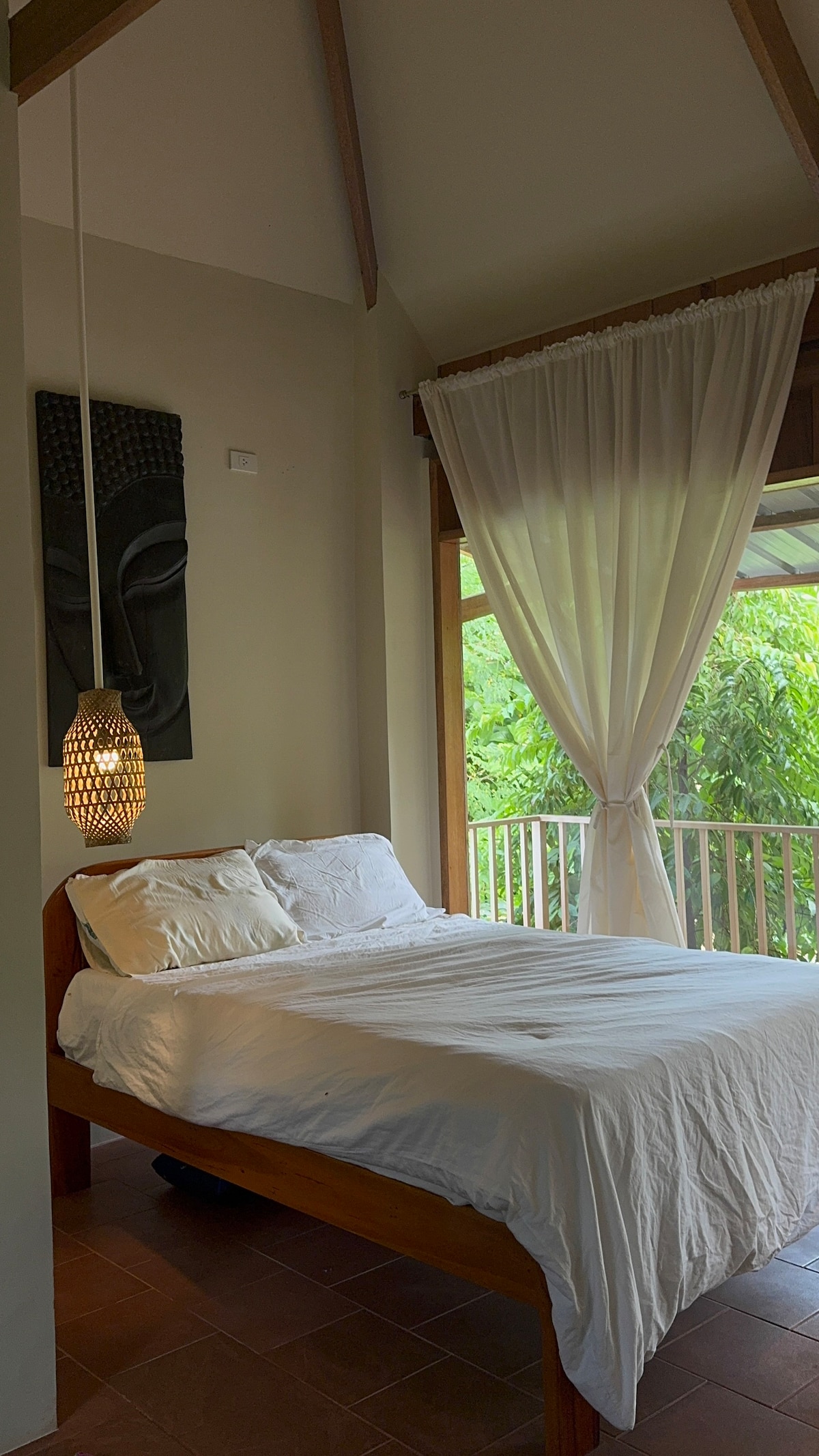 Rilassati in questa elegante stanza ispirata all'isola, combinando il comfort moderno con texture naturali. Perfetta per coppie o viaggiatori singoli, lo spazio presenta un letto comodo, un'illuminazione soffusa e un'atmosfera serena. Uscite all'aperto, percorrete un rigoglioso sentiero costeggiato da piante tropicali e godetevi un rinfrescante bagno nell'esclusiva doccia esterna in bambù. Situato in una zona tranquilla dell'isola, a pochi minuti dalla spiaggia e dai luoghi locali.