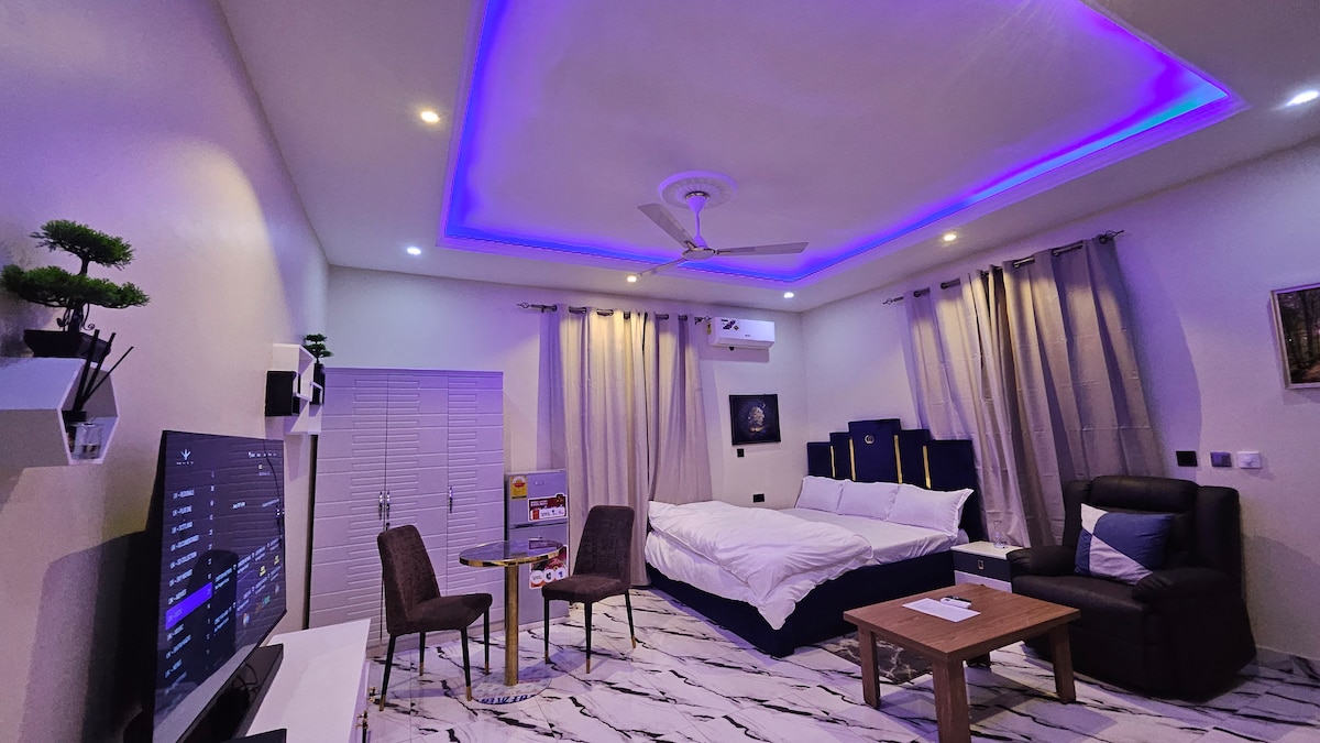 Cozy Studio and 1-bed apartments. 24hr CCTV security, Wi-Fi Internet, AC, rooftop terrace with breathtaking views of the University of Ghana Legon, Madina & surrounding areas. Smart TV, spacious living areas, private kitchen, Shared Laundrette, Car rentals, parking for 4 cars. airport pickup. Corner shop on site. • 25 mins drive to Kotoka Int. Airport, Shoprite, Atlantic Mall. • 10 mins drive to the Legon Botanical Garden • 40 mins drive to Aburi botanical gardens Book, Enjoy, Relax ☺️