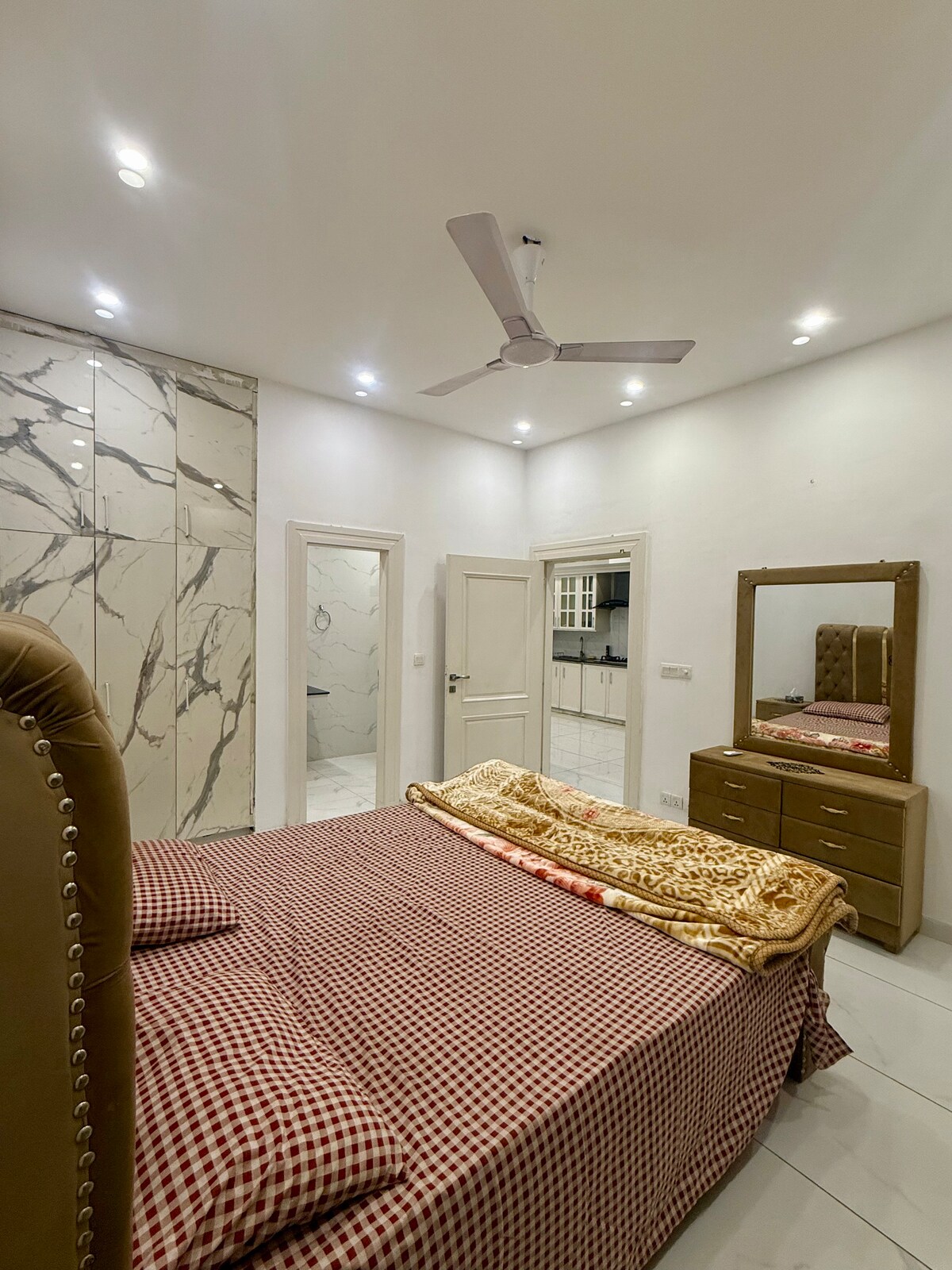 Accogliente porzione al piano terra con 2 camere da letto a New City Ph 2 Wah Cantt (Q Block). Una camera con letto king-size, l'altra con letti singoli. Cucina completamente attrezzata con bombola del gas fornita. Bollette elettriche incluse nel prezzo. Situato a soli 600 metri dalla Nova City School, a 2 minuti dall'autostrada M2 di Islamabad e a 15 minuti dall'aeroporto di Islamabad. Ideale per famiglie o viaggiatori d'affari in cerca di comfort e comodità. *Si prega di tenere presente che questa casa sarà data solo alle famiglie. Il gestore della casa potrebbe richiedere un documento d'identità*