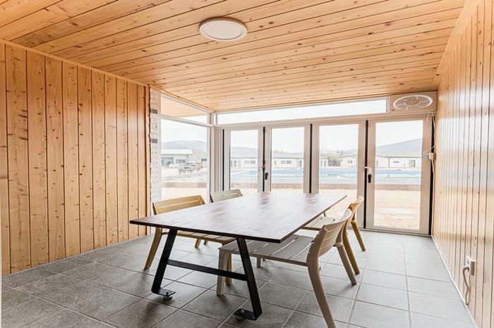 Si tratta di una casa di campagna con diversi alberi da frutto situata a un'altezza di 420 m sotto il Samdobong della Montagna Democratica, lontano dalle vivaci attrazioni turistiche del Deokyusan National Park e del Muju Resort. Ci vogliono circa 10 minuti per raggiungere Taekwondo Won e Bandiland e 25 minuti per il Deokyusan Muju Resort. Nell'entroterra del paese si può godere anche delle bellezze naturali della valle. Uncle House è l'edificio in legno in stile americano più coibentato, progettato e costruito dalla prestigiosa società di costruzioni in legno di Seul. Il soffitto è alto, l'estate è fresca e l'inverno è una casa calda, una vista alta e ampia e un luogo caldo per godersi il focolare con vista sulle stelle. Il primo piano è lo spazio della coppia di host, mentre i 56m2 (inclusa la terrazza) al secondo piano sono la pensione. Ha un ingresso separato, e non è una casa scomoda perché c'è un host, ma è più apprezzato perché si può ottenere aiuto e servizio immediati. Uncle Style BBQ è il luogo ideale per una famiglia americana, e le abilità culinarie con la casa dello zio sono superbe. La sala solarium con caminetto esterno privato è di gran lunga la migliore ♡