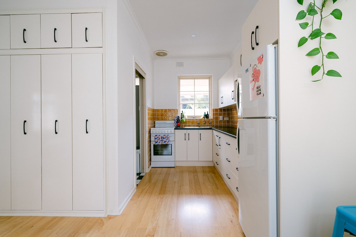 Modern one bedroom unit with private entry. Check in anytime, easily, 24 hours a day with a lock box. You're just 500m from Jetty Road with cafes, boutiques and restaurants all the way down to Moseley Square and Glenelg Jetty. Packed with homely touches and everything you need for a comfortable, stress-free stay. •NEARBY• 🚃 Tram - 400m 🛒 Woolworths - 400m 🏖️ Beach - 1.1km ✈️ Adelaide Airport - 8km (15 min drive) 🍷Mclaren Vale - 33km (30 min drive)