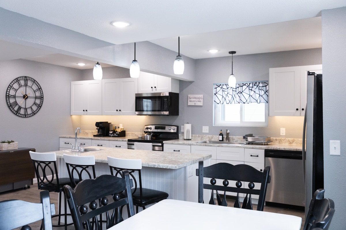 Crea dei fantastici ricordi in questo alloggio unico, accogliente e adatto alle famiglie. 1.350 piedi quadrati a pianta aperta, ospita comodamente 4 persone in 2 camere da letto, ma dispone anche di un letto a scomparsa che può ospitare 2 bambini piccoli accanto al logo dei Chicago Cubs di 6 piedi in una delle zone giorno. La parete delle salse piccanti è rifornita. Su un solo livello, dispone di riscaldamento a pavimento in cucina, zona giorno più piccola e bagno, ed entrambe le camere da letto. Camino a gas nel soggiorno principale, dispone inoltre di aria condizionata. Dietro l'alloggio c'è un ampio cortile aperto.