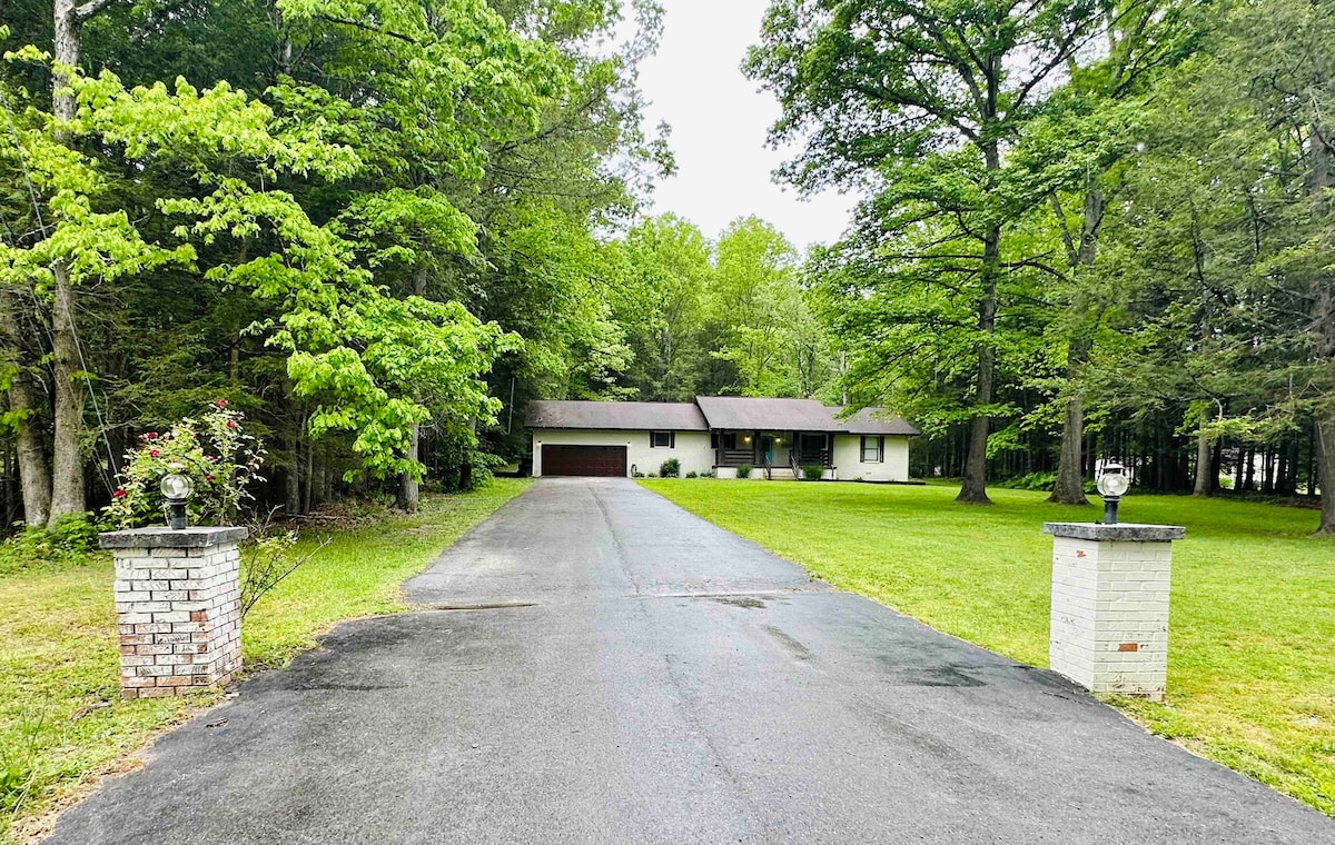 Goditi questo ranch in stile rustico nascosto tra le colline della Virginia Occidentale meridionale. La casa vanta 4 bellissime camere da letto, una vasca da bagno, una sala cinema e una parete da arrampicata al coperto. Rilassati vicino al focolare all'aperto o goditi una passeggiata lungo il vialetto alberato, se preferisci stare all'aria aperta. Abbastanza isolata da dimenticare dove ti trovi, ma abbastanza vicina alle attrazioni locali come Winterplace Ski Resort, New River e Burning Rock.