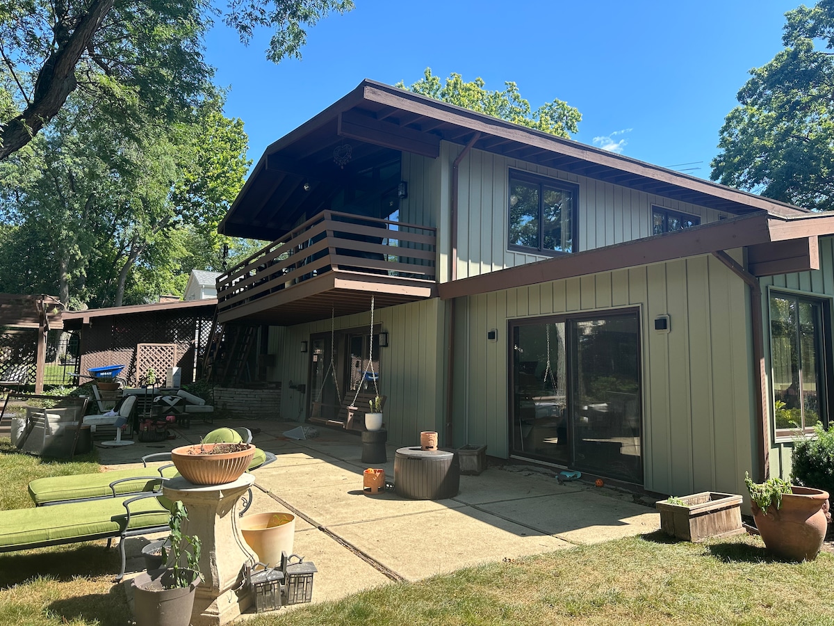 You'll be in the upper flat/apt of this 1912 Foursquare 2-flat that's been in my family since 1970. Hubby & I live on the first floor, so I'll be quick to respond if you need. You can WALK to: downtown Elmhurst with all its indie restaurants & shops; Metra to Chicago; Elmhurst Uni; YMCA; public library; 10-screen theater; 17-acre multi-purpose public park. You're free to share our tree-filled backyard with furniture, 2 fire-pits, hammock + your own private back porch. Age min 12 yrs.