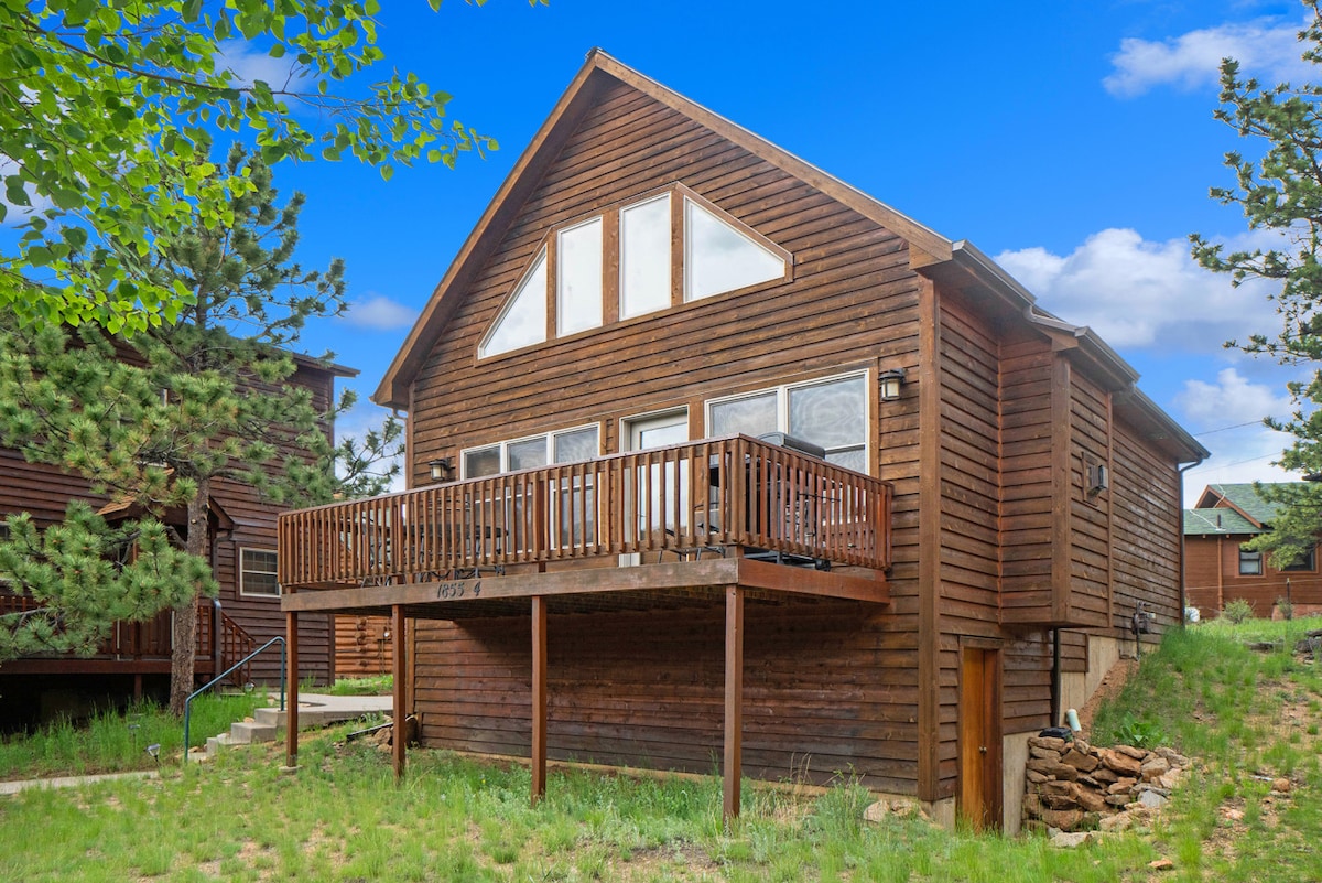 La Peak View Mountain House (EP 3541) è un grazioso monolocale di 78 metri quadrati immerso nella foresta, con un alto soffitto a volta e ampie finestre. ➡Goditi il panorama mozzafiato del Monte Meeker e Twin Sisters. ➡Rilassati nella vasca idromassaggio privata dopo una giornata di visite turistiche o escursioni ➡Sali sulle montagne russe con pass illimitati (leggi di seguito) ➡Raggiungi facilmente in auto il RMNP (a soli 8 km) ➡Goditi l'accogliente caminetto di notte e guarda film e spettacoli su Dish Network e Netflix ➡Dormi su un letto king-size