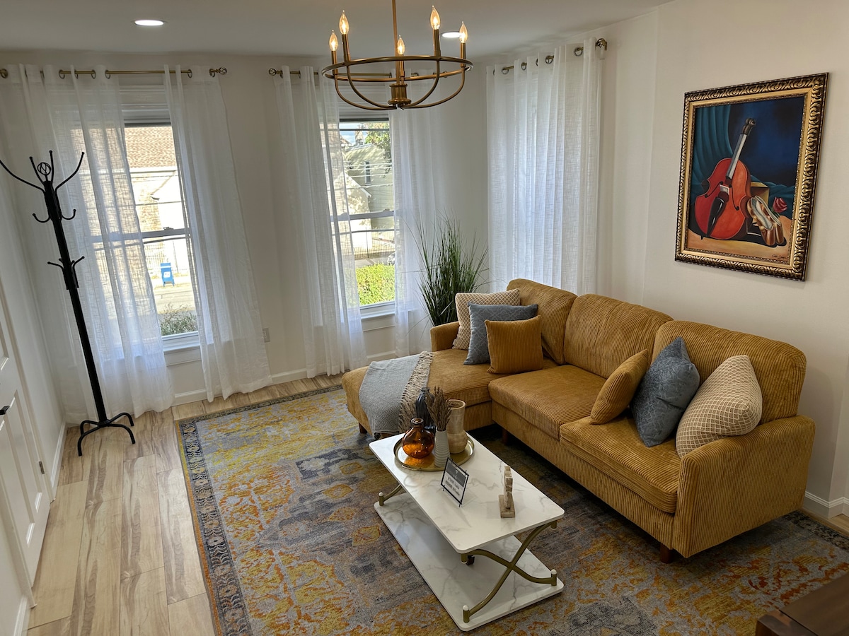 Appartamento con 1 camera da letto e ampio ufficio (con divano letto nel centro di Montclair) recentemente ristrutturato e arredato! Questo appartamento gode di moltissima luce solare naturale e si trova al secondo piano senza ascensore. Vicino a fantastici ristoranti, caffetterie, boutique, mercati, parchi, autobus/treno per New York, ecc. Il trasporto per New York City richiede meno di un'ora. Questo spazio è ideale per famiglie, professionisti che lavorano e gruppi di amici. Parcheggio disponibile su strada e fuori strada. Molto vicino anche al Metlife Stadium! (Lo spazio ufficio è collegato alla camera da letto!)