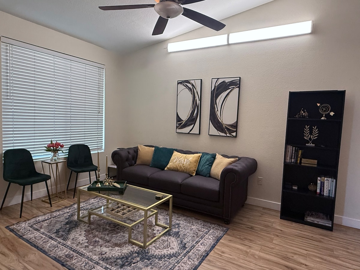 Goditi una vacanza all'insegna dello stile in questo appartamento in centro. Vicino alla Loop 101 (facile accesso a Scottsdale/Peoria) e vicino alla I-17 per un facile accesso all'aeroporto Sky Harbor (PHX), al centro di Phoenix, a ristoranti, negozi, campi da golf, al Lake Pleasant per il kayak e allo State Farm Stadium. L'intero appartamento è a tua disposizione, e include una TV a schermo piatto, un accogliente caminetto, un divano elettrico completamente reclinabile in uno spazio accogliente. La cucina è completamente attrezzata per 4 persone. Per comodità, sono disponibili teli da piscina.