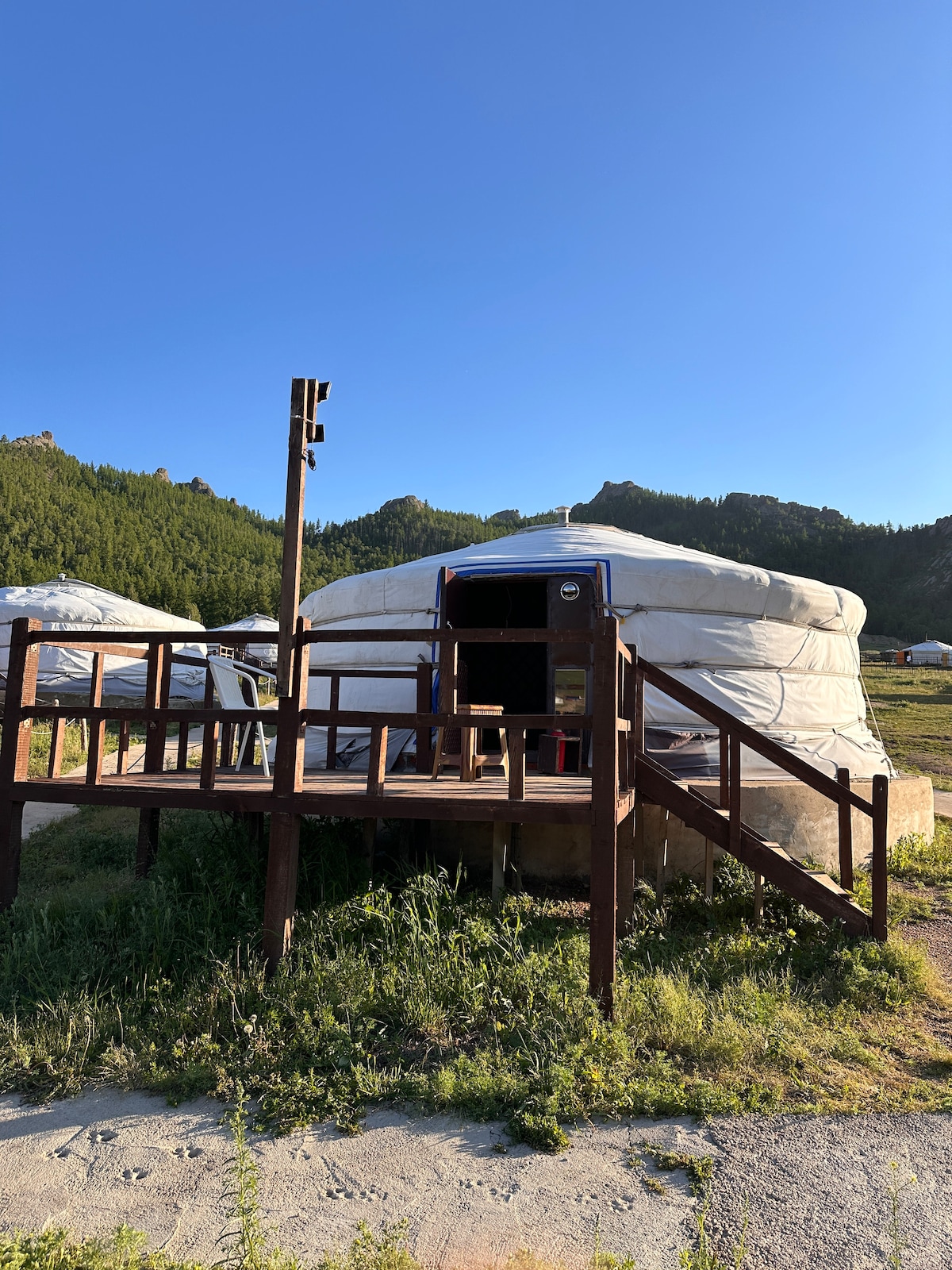 Large open ground for outdoor games, picnics, and stargazing. Whether you're looking to relax, explore the outdoors, or experience authentic Mongolian nomadic life, this spot is a wonderful choice just a short drive from the capital. Located next to Suuj Resort, approximately 87km from central Ulaanbaatar. (1h 40min drive) Services at extra fee: ✈️Airport pick-up, drop off 🐎Horse riding 🍲Breakfast, lunch, dinner No fee: 🏹Archery 🛷Snow sledding 1 Ger with 3 beds