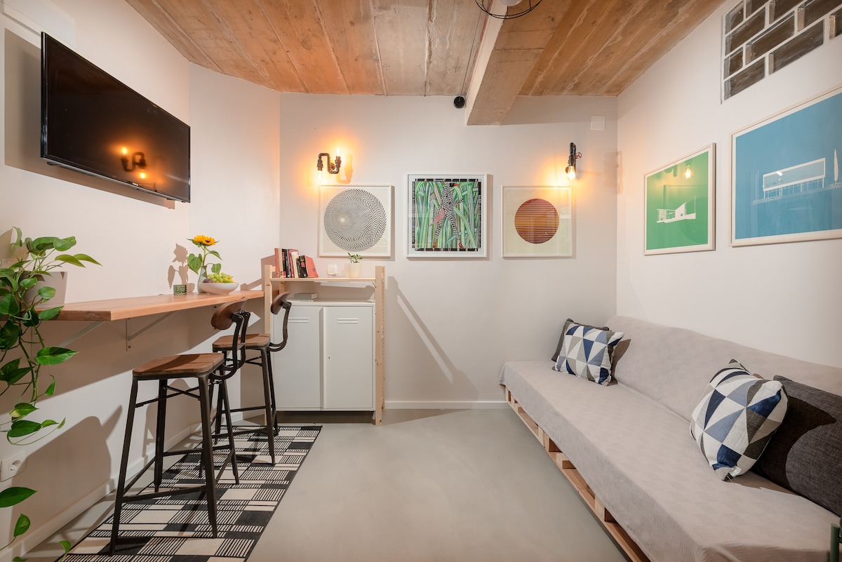 Svegliati sotto le travi a vista di soffitti in legno secolari. Lasciati incantare dai tocchi antichi, dalle scale in stile industriale e dalle finiture raffinate, nascoste dietro i vasti e massicci archi interni in pietra del Palazzo Imperiale. Immergiti nella storia e bevi un bicchiere di vino sul balcone di questo loft unico dopo aver esplorato le delizie di Spalato, dove pezzi da museo adornano una palette di sabbia e tenui tonalità terrose.