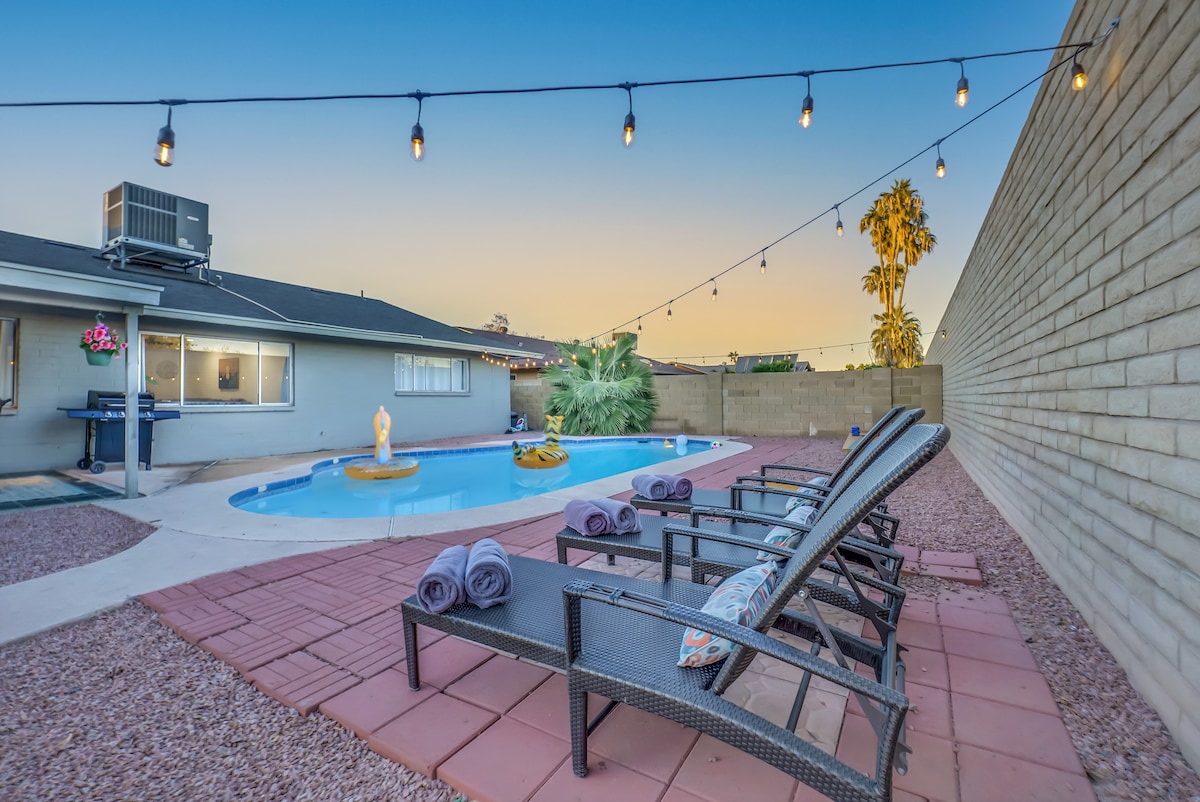 Con questo alloggio in centro, la tua famiglia sarà vicina a tutto. Lo stadio dei Chicago Cubs si trova proprio in fondo alla strada. Si trova a pochi passi dalla metropolitana leggera e dal quartiere asiatico. È vicino al centro di Tempe, a Scottdale e al centro di Mesa, con facile accesso all'autostrada, in un tranquillo quartiere residenziale. Rilassati in piscina e nel cortile mentre grigli o cuoci la pizza nel forno in mattoni. I proprietari vivono nelle vicinanze e sono a disposizione per qualsiasi necessità.