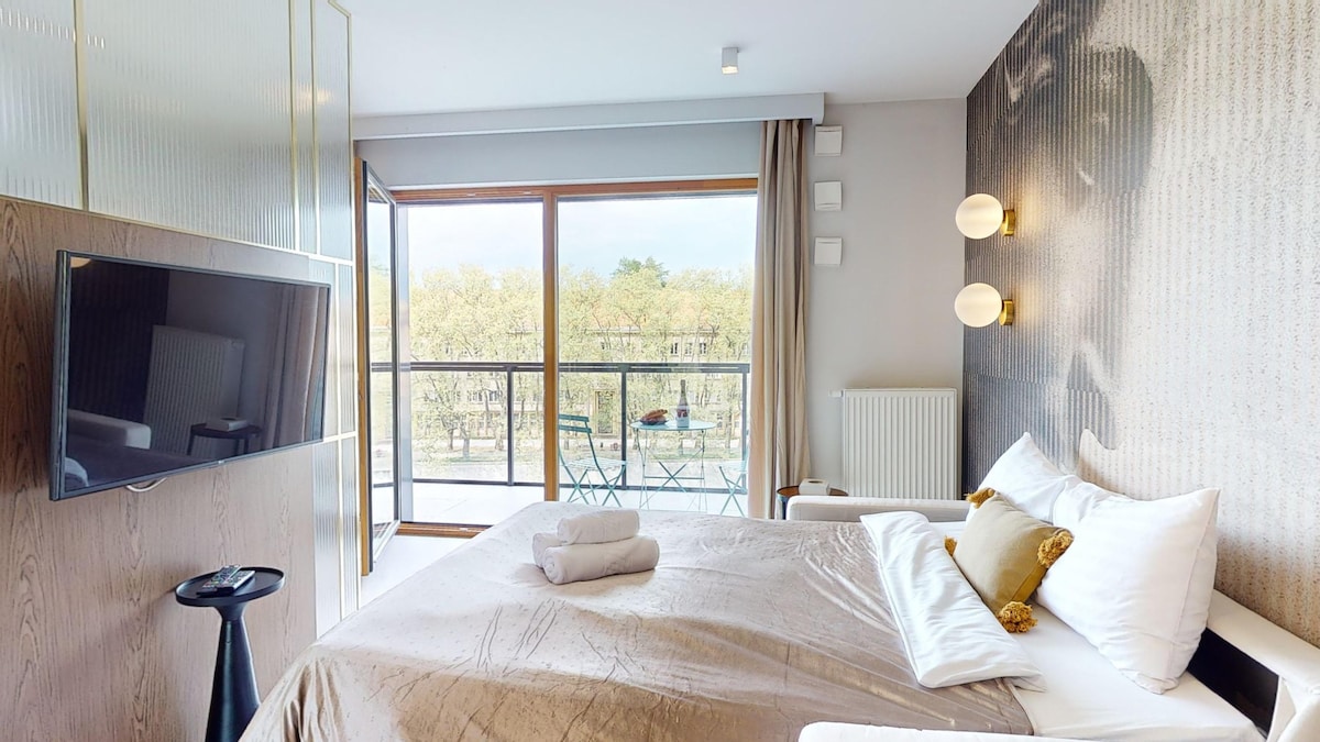 Goditi una vacanza all'insegna dello stile in questo spazio in centro. È un nuovissimo monolocale con tutto il necessario nei dintorni, ma con una vista piuttosto verde dalle finestre e dal balcone. A tua disposizione ci sono una cucina completamente attrezzata, un bagno moderno con doccia spaziosa, una piccola camera da letto accogliente per due ospiti, un comodo divano e anche un televisore disponibile per guardare da diverse angolazioni intorno allo spazio principale. La posizione ottima ti permette di goderti la città con il meglio che può offrire a piedi.