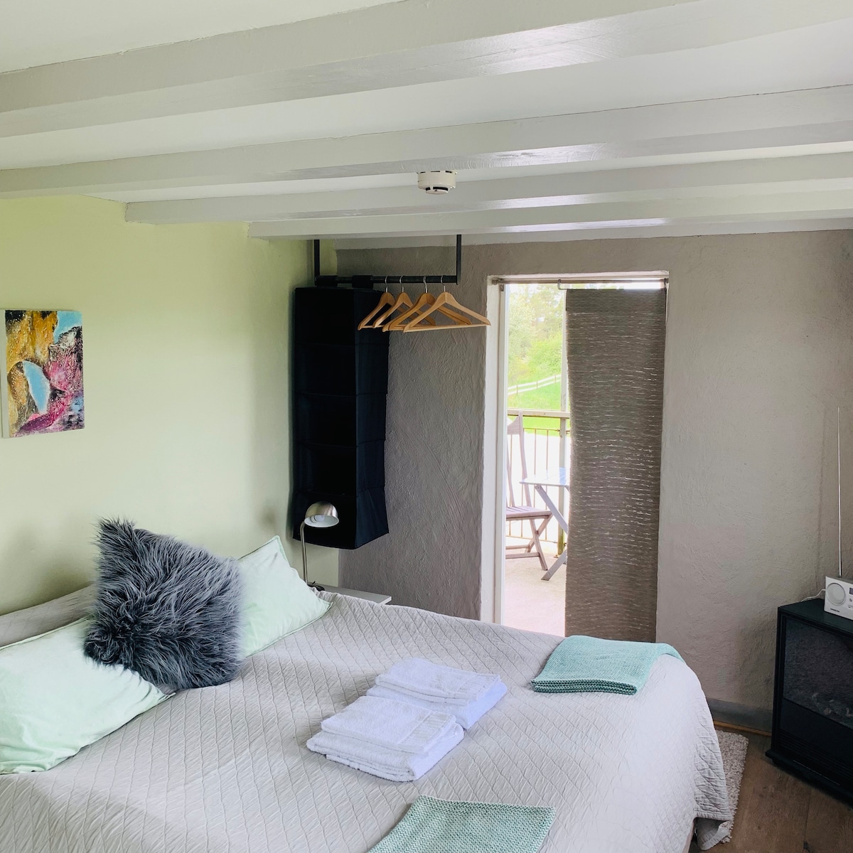 Benvenuti in questo affascinante monolocale, 38 m2 con una splendida vista sul lago dal balcone. Riccamente popolato di uccelli, volpi e cervi che si possono vedere con il telescopio. Porta le biciclette al porto. Goditi la nostra sauna a legna e poi addormentati nel comodo letto. Offriamo aria fresca, tranquillità, silenzio e buona acqua potabile pulita dal rubinetto. Eccellenti piste ciclabili/escursionistiche in una splendida natura e paesaggi culturali con edifici medievali. 50 km da Visby. 13 km da Fårösund. 5 km dalla fermata dell'autobus. È disponibile un caricabatterie per auto. La pulizia è a carico degli ospiti.