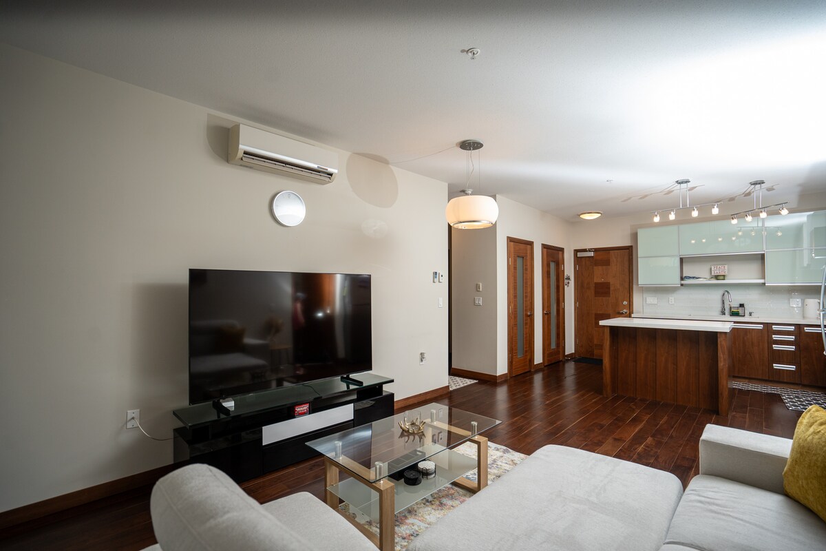 Ti diamo il benvenuto nella nostra lussureggiante e nostalgica suite a Regina, che combina lo stile moderno di metà secolo con quello degli anni '70! Scopri la perfetta combinazione di stile retrò e comfort moderno con uno spazio di lavoro dedicato, una grande TV e un divano componibile, oltre a piante vivaci che aggiungono un tocco di natura. Con una posizione privilegiata accanto al percorso polivalente lungo il torrente, vicino a negozi, ristoranti e intrattenimento, questa oasi unica ti ruberà sicuramente il cuore. Prenota ora e vivi un soggiorno tranquillo e rigenerante!
