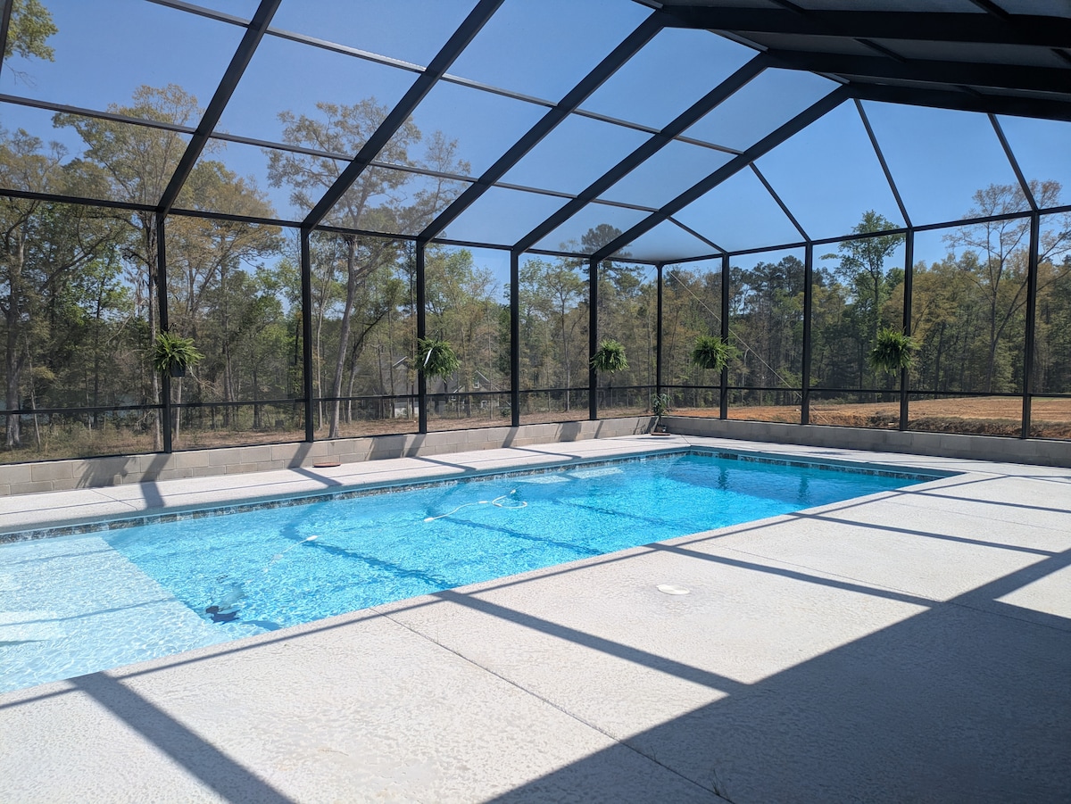 Lilly's Pad is a beautiful country setting off the beaten path. 2/2 New construction, featuring 1800 year old reclaimed cypress kitchen, counter tops, gas stove top, built-in microwave oven. Lilly's Pad features a beautiful outdoor living area with a brand new salt water pool, and 1000 sq ft of screened in outdoor living. You can relax in the pool completely surrounded by screen while enjoying the beautiful star lite skies. Lilly's Pad is not recommended for small children, due to the pool.