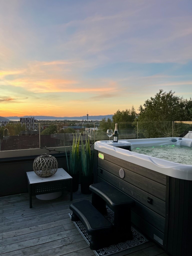 Grazioso appartamento con vista sulla città. A soli 10 minuti dal centro città. Fermata dell'autobus a 100 metri dalla casa. Quartiere tranquillo alla fine della strada, proprio accanto al sentiero escursionistico per Estenstadmarka. Qui potrai rilassarti nella vasca idromassaggio e goderti la vista di Trondheim.