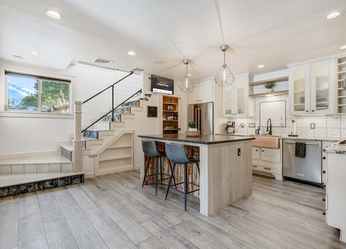 Benvenuto nella tua splendida baita Rockhaven. Questa lussuosa casa Green Mountain Falls è stata completamente ristrutturata per includere 3 camere da letto e 2 bagni. Il rifugio principale ha il suo bagno privato e si affaccia sulla terrazza e sulla VASCA IDROMASSAGGIO. La baita ha un concept design aperto che la rende fantastica per le famiglie. Mentre entri nella baita, ammira il caminetto in quarzo rosa a tutta altezza e le travi a vista. Ha anche una lavatrice e un'asciugatrice impilabili per la tua comodità. Caricabatterie per veicoli elettrici a pagamento.