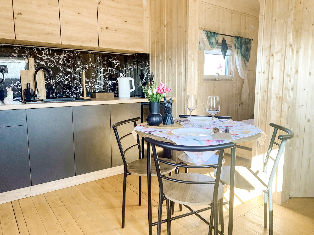 Ciao, c'è un bellissimo cottage moderno tutto l'anno in affitto con un ampio terrazzo. Il cottage si trova su un grande terreno , nella splendida zona pittoresca del Parco Nazionale della Beaver Valley a Oak Gaju. Il pacchetto di acqua calda sulla terrazza è al costo di 180zł a notte, lo accendiamo per un minimo di 2 notti. Il luogo perfetto per rilassarsi dal trambusto della città, tanto bel bosco, zone montuose, il fiume Beaver, l'allevamento di cavalli, la pista ciclabile, i sentieri escursionistici, tanti monumenti, castelli. Non affittiamo per feste