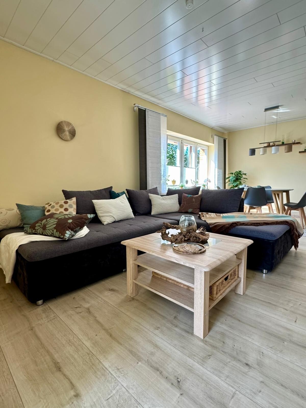 L'appartamento soleggiato e luminoso "Scheunendiele" si trova in un fienile a graticcio ristrutturato con giardino privato e terrazza solarium. Spazioso 60 mq, soggiorno con cucina a vista completamente attrezzata, offre spazio per 2- 4 persone. La zona pranzo attrezzata per un massimo di 4 persone si trova accanto alla zona giorno con divano e poltrone e un'ulteriore area lettura vicino al camino. Le due camere da letto si trovano al piano superiore, con vista sul bellissimo giardino.