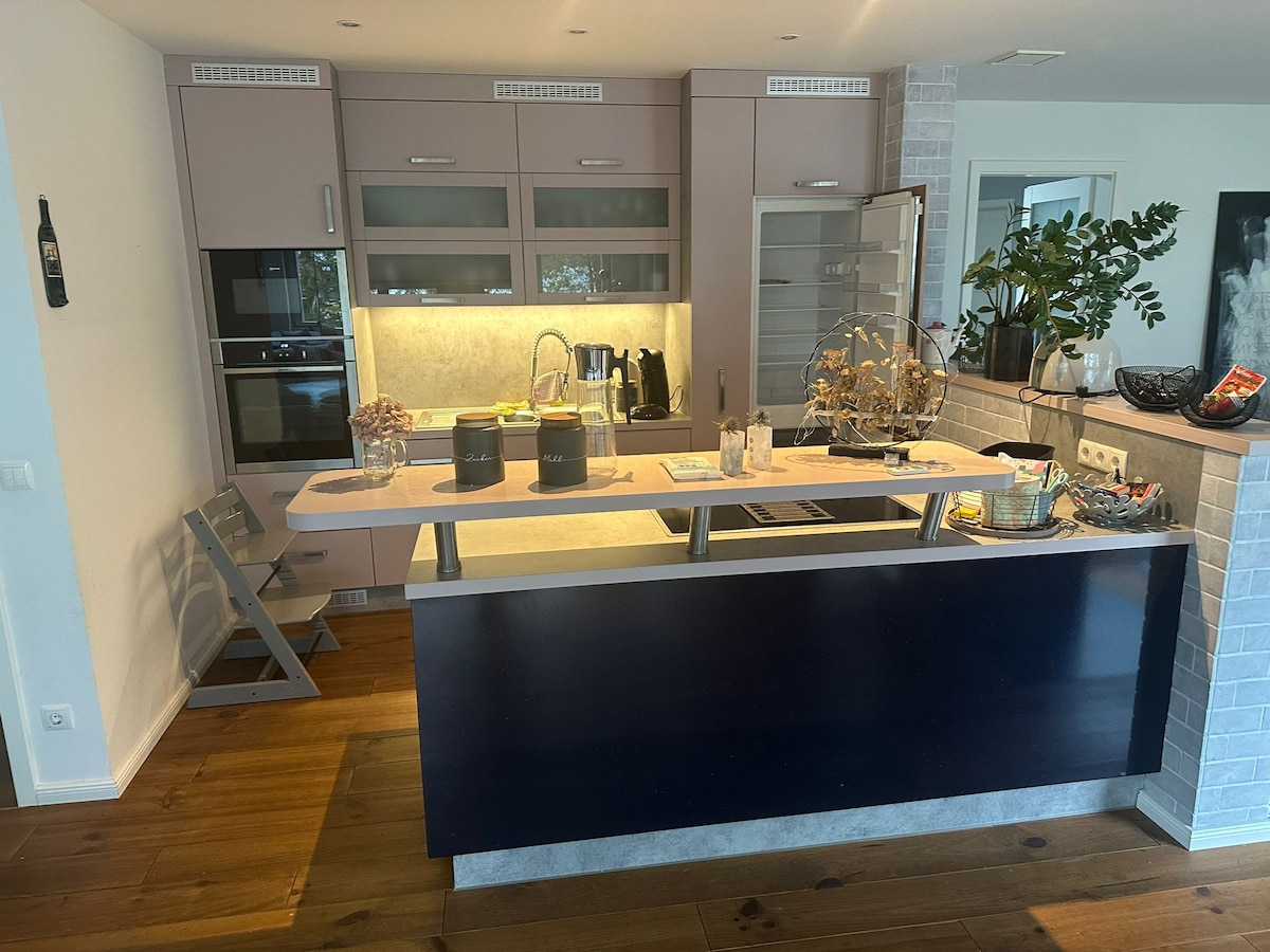 Questo rifugio di nuova costruzione per famiglie e coppie combina sostenibilità, design moderno (selezionato per il giorno dell'architettura 2024) e funzionalità per un soggiorno rilassante in armonia con la natura. L'idillio vacanza è raggiungibile da Berlino in treno in 90 minuti e offre WiFi gratuito, caminetto per serate accoglienti, barbecue per gli amanti del barbecue, ampio giardino e parcheggio privato gratuito con stazione di ricarica elettrica nella proprietà.