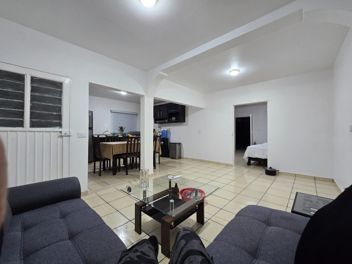 Un appartamento con ampio parcheggio con cancello elettrico, l'accesso al luogo è abbastanza facile e autonomo e si trova a 50 metri dalla strada internazionale (Messico 15) oltre a un OXXO. Ha tutto ciò di cui hai bisogno in cucina, TV con accesso a Netflix , aria condizionata, WiFi. È un ALLOGGIO INTERO