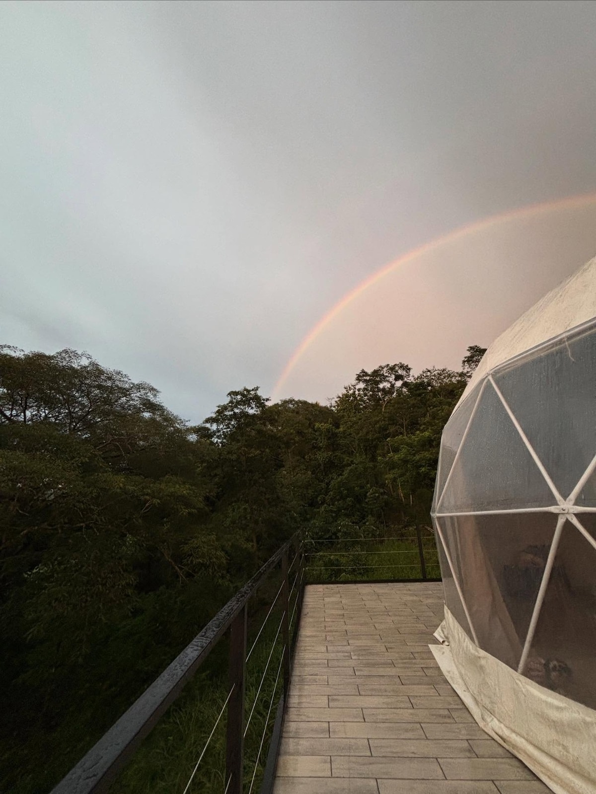Questo rifugio unico in Costa Rica è un mix mozzafiato di lusso moderno e immersione nella natura. La nuovissima cupola è stata progettata con un'elegante struttura geometrica, caratterizzata da ampie finestre di vetro che si curvano perfettamente con la struttura. Le finestre offrono una vista impareggiabile sul terreno del rifugio, permettendoti anche di osservare le stelle di notte comodamente dal tuo letto.