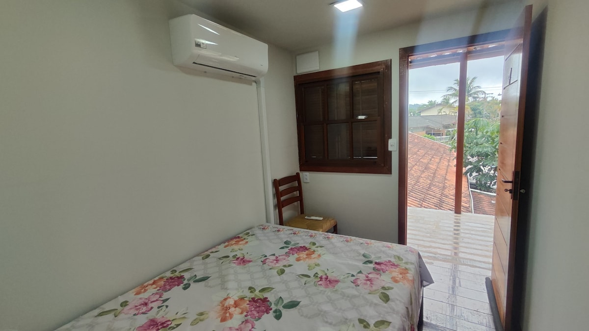 Chalet molto accogliente per coppie e famiglie! Ideale per famiglie, gruppi di amici o coppie. Con accesso a sentieri di altre spiagge (spiaggia nera e camburi) che si affacciano sul canale Bertioga, accanto al patrimonio storico delle rovine della chiesa Ermida Santo Antonio do Guaibê 1546 e al forte São Felipe 1576 con alberi autoctoni e alberi da frutto. Vieni a goderti questo paradiso!! A causa del maltempo, stiamo lavorando con un formato ridotto. Solo 1 camera da letto della casa. Per settembre avremo l'altra stanza disponibile.