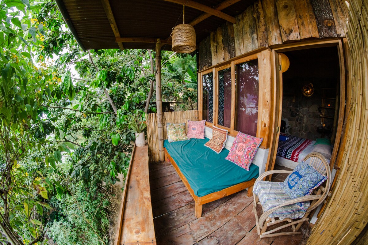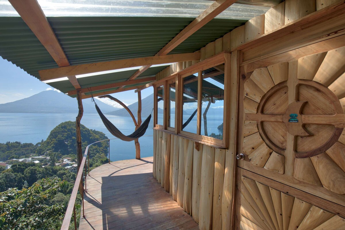 La Casa del Mundo è raggiungibile SOLO in barca. CARATTERISTICHE SPECIALI: Accessibile SOLO in barca Suite spaziosa e confortevole con un accogliente caminetto. Balcone privato con vista sul lago. Amaca per rilassarsi o leggere. Splendida vista sul lago, sui vulcani e sui villaggi circostanti. Accesso wireless a Internet gratuito. POSIZIONE, LETTI E CAPACITÀ: si trova a 2 minuti (85 scale) sopra l'ufficio e la zona pranzo. 1 letto queen-size e 1 letto singolo opzionale. Può ospitare fino a 3 persone. Bagno privato.