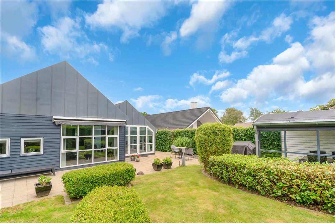 LUSSUOSA casa vacanze per 8, vicino a prato e spiaggia vicino a Esbjerg, perfetta per vacanze/lavoro. Ingresso con guardaroba, grande cucina e soggiorno, nonché spazio ufficio con 2 schermi e tavolo regolabile in altezza, TV. Finestre panoramiche e uscita su un fantastico giardino e splendide terrazze. Grande camera da letto con letto matrimoniale rialzato, letto a castello, letto junior e uscita. 2 camere (2x2 letti a castello) Google TV e armadio. 1 grande bagno con grande doccia, armadi, lavatrice, asciugatrice. Carport e parcheggio.
