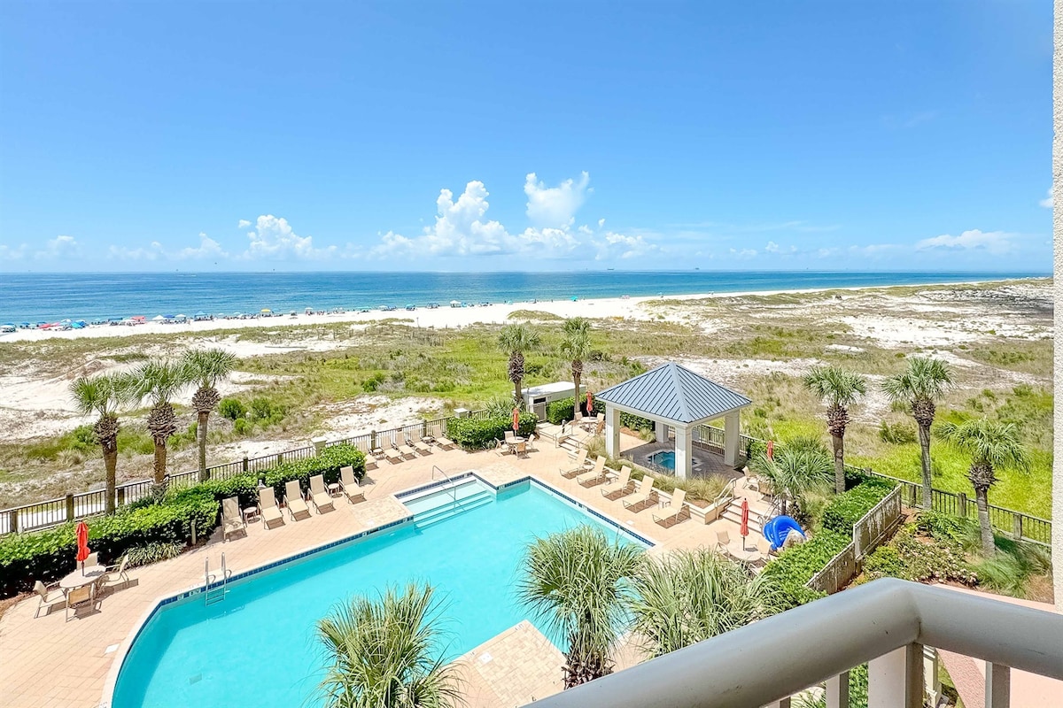 Fronte spiaggia - The Beach Club - Viste mozzafiato sul Golfo del Messico e sulla piscina cristallina dal tuo tranquillo balcone privato. I nuovi proprietari hanno rinnovato questo appartamento sulla spiaggia, una suite principale, graziosi letti a castello a muro e un divano letto per dormire comodamente. La vernice fresca e gli arredi nuovi mantengono questo spazio leggero e arioso, accogliente per tornare a casa dopo una giornata di divertimento e sole. La cucina a pianta aperta è ben attrezzata per lo chef del tuo equipaggio. Perfetto per una piccola famiglia.