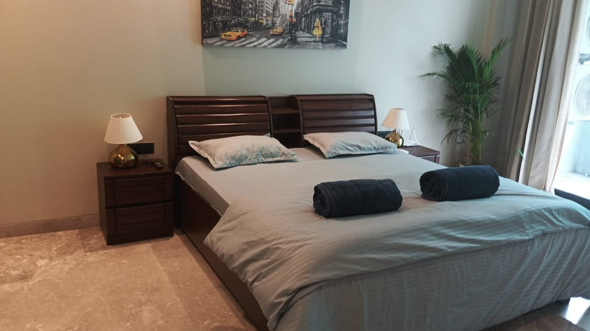 Uno spazio lussuoso in un'area tranquilla, verde e elegante, senza folle e con gli espatriati preferiti. Perfetto per una vacanza o un viaggio di lavoro. Intl Airport -10 minuti A pochi passi dal nostro vialetto ti porterà in un ampio salotto con morbidi posti a sedere e bar in stile pub con cucina e bagno. Cucina attrezzata con piano cottura+micro+forno+ bollitore elettrico +Nespresso+Nutribullet. La camera da letto è dotata di letto king-size ebagno interno. Studio/ufficio è perfetto per le esigenze lavorative Troverai un divano letto singolo nella zona salotto che viene utilizzato per il terzo ospite .