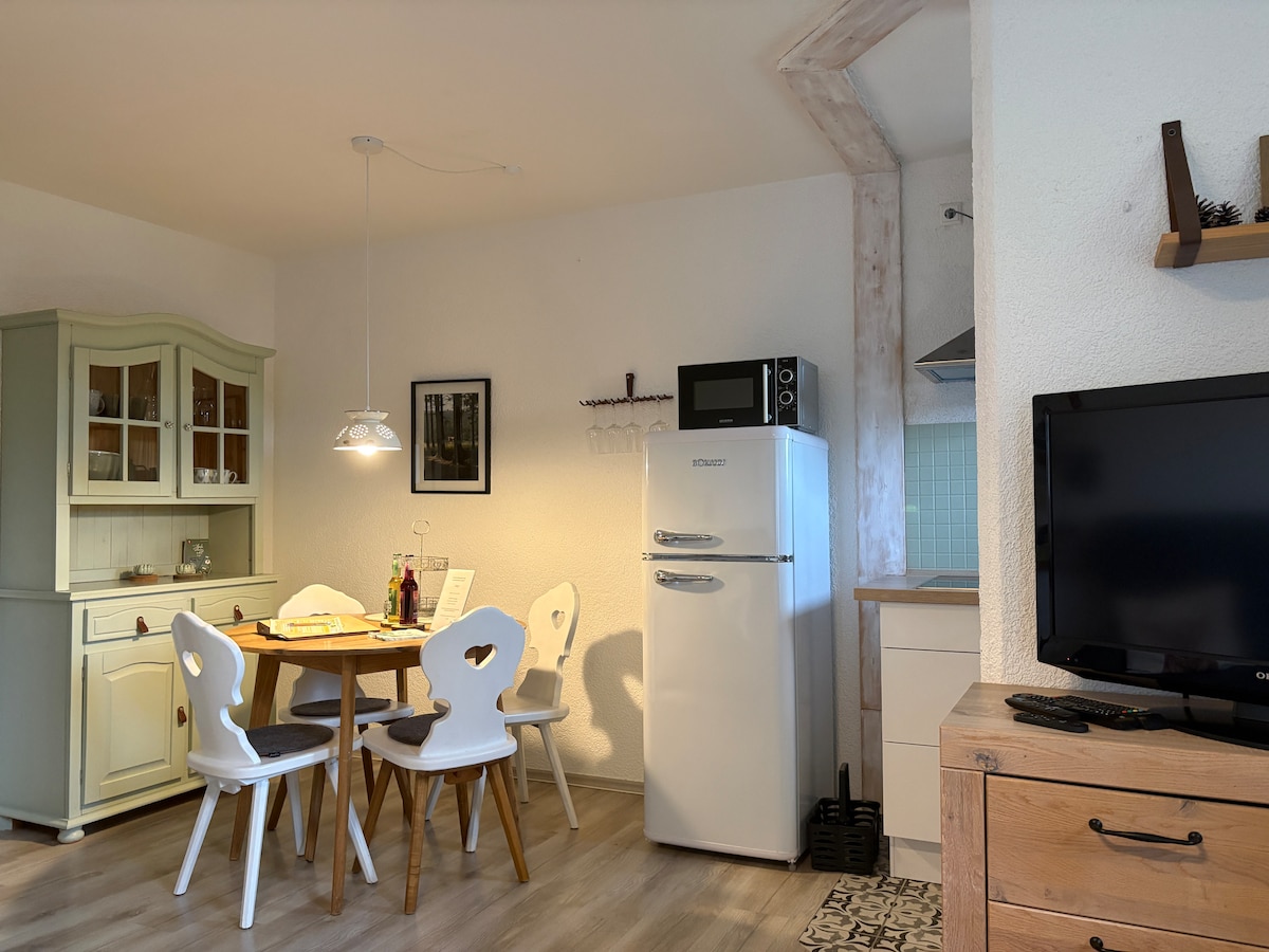 Il nostro appartamento "Mühlenlounge" merita il suo nome. Viviamo in un vecchio frantoio, a pochi passi dal grazioso centro storico di Haslach, dove colpisce la struttura a graticcio conservata. Il Mühlenlounge ha un carattere loft e molti originali dell'epoca del frantoio sono stati conservati. Tuttavia, lo stato dell'arte in questo appartamento è moderno, come TV, attrezzature da cucina, macchina per il caffè, Wi-Fi, ecc.