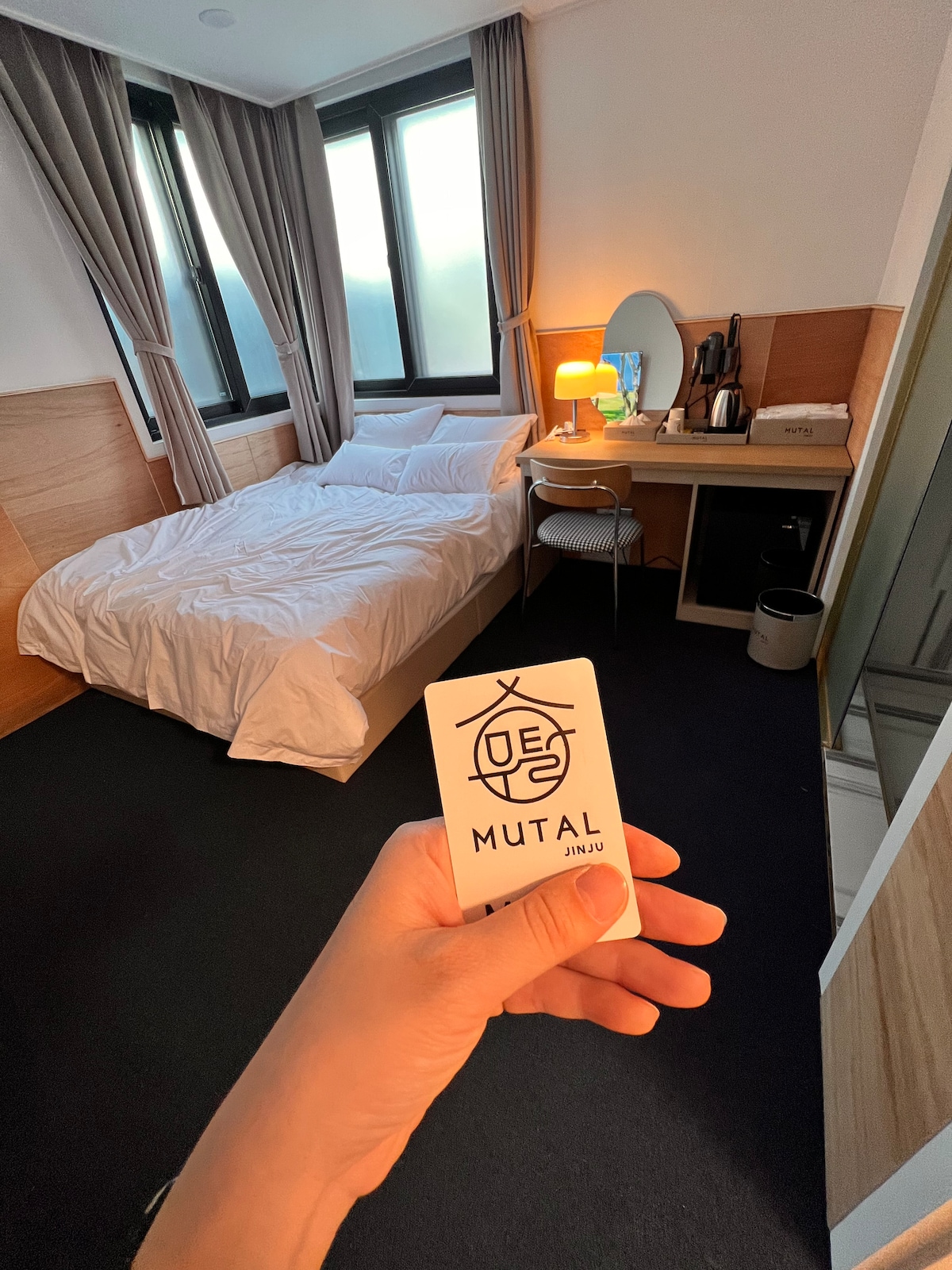 Oggi ti facciamo il tifo per una giornata sicura nella tua vita quotidiana frenetica. Si tratta di un nuovo alloggio emotivo a Jinju, Mutal Hotel Jinju Branch. Quando visiti la perla per un viaggio o un viaggio di lavoro Ti è mai sembrato che la struttura non fosse troppo vecchia o troppo pulita? Quando sei preoccupato perché l'orario di check-in è in ritardo? Ti sei sentito a disagio perché non avevi una scrivania quando dovevi fare del lavoro in più nella stanza? Ho bisogno di una stanza per me, ma poiché ci sono solo stanze per 2 o più persone, ti sei sentito sopraffatto? Nel Jinju Motel Mutal, durante il lungo processo di ristrutturazione, Abbiamo pensato molto a fornire un alloggio piacevole a un prezzo ragionevole per coloro che vengono a Jinju per vari scopi. Camera per una sola persona dove poter soggiornare casualmente anche da soli Scrivanie e caffè aromatico senza lavoro Check-in 24 ore su 24, nessun problema con chiosco senza contatto Tutte le stanze sono per non fumatori e per la cura dei diffusori Offriamo uno spazio pulito e confortevole con toni di design accoglienti e caldi.